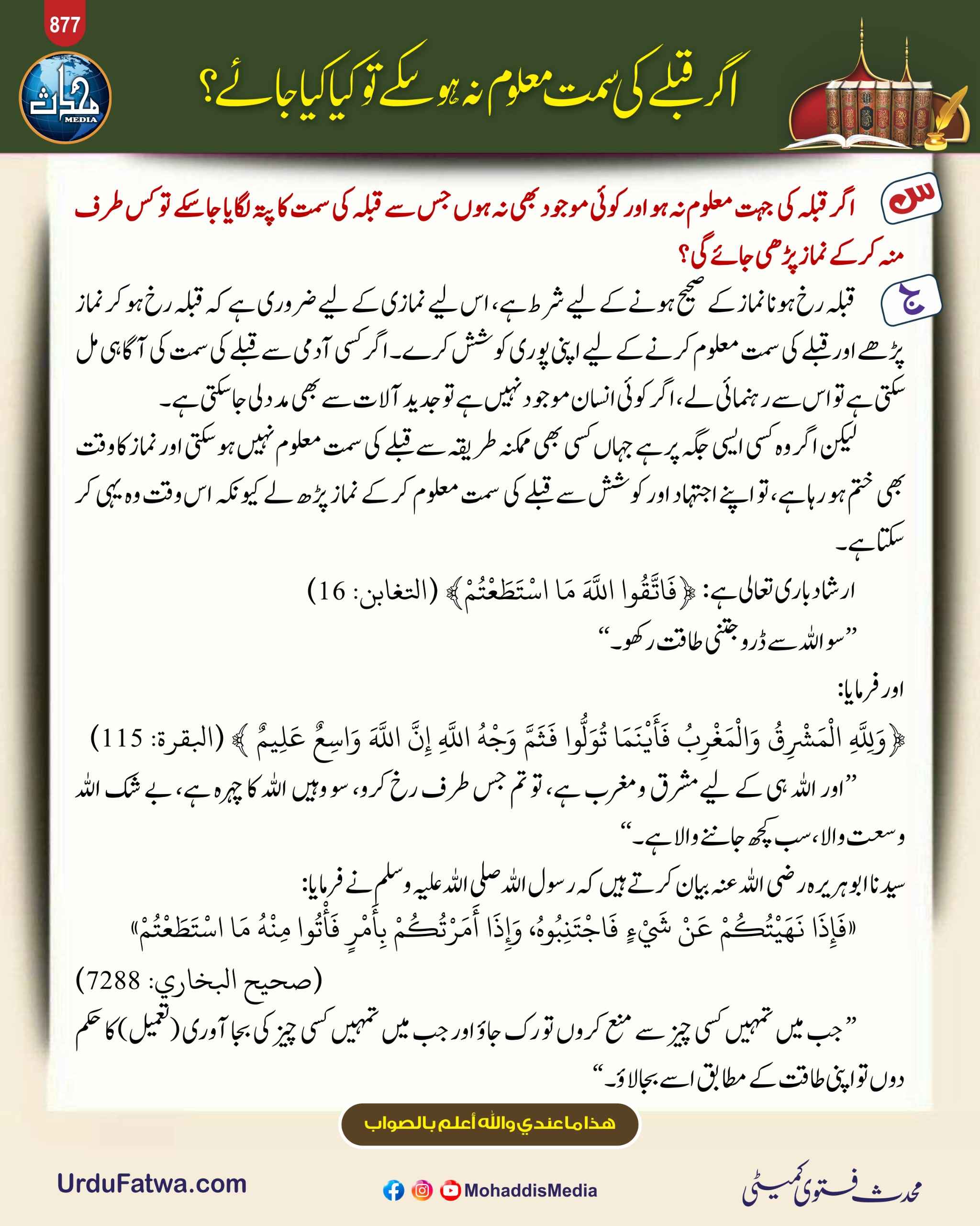 اگر قبلے کی سمت معلوم نہ ہو سکے تو کیا کیا جائے؟