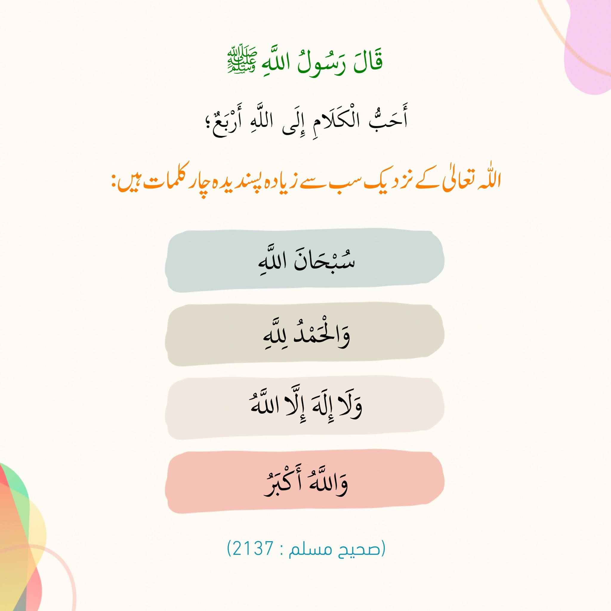 Post published: اپریل 20, 2026 Post category: آداب واخلاق - اعمال، وظائف، اذکار وادعیہ - تزکیہ نفس ناشر: العلماء اللہ کے نزدیک پسندیدہ کلمات Post Views: 8 اس موضوع کے دیگر گرافکس مزید دیکھیں 232 بار دیکھا گیا اصلاح معاشرہ علماء اپنے علم سے متعلق پوچھے جانے کے بارے کتنے فکر مند ہوتے تھے ستمبر 24, 2024 559 بار دیکھا گیا آداب واخلاق مسلمان مسلمان کا بھائی ہے مئی 13, 2024 144 بار دیکھا گیا 12. ذی الحجہ یوم عرفۃ کے روزے کی اہمیت ستمبر 8, 2025 اس ناشر کے دیگر گرافکس مزید دیکھیں 152 بار دیکھا گیا اقوال سلف صالحین توحید کا اقرار بھلائی کا دروازہ کھولتا ہے جولائی 26, 2024 31 بار دیکھا گیا آداب واخلاق عشرہ ذوالحجہ میں کرنے کے کام اپریل 1, 2026 222 بار دیکھا گیا اعمال، وظائف، اذکار وادعیہ والدین کی دعا نومبر 19, 2024