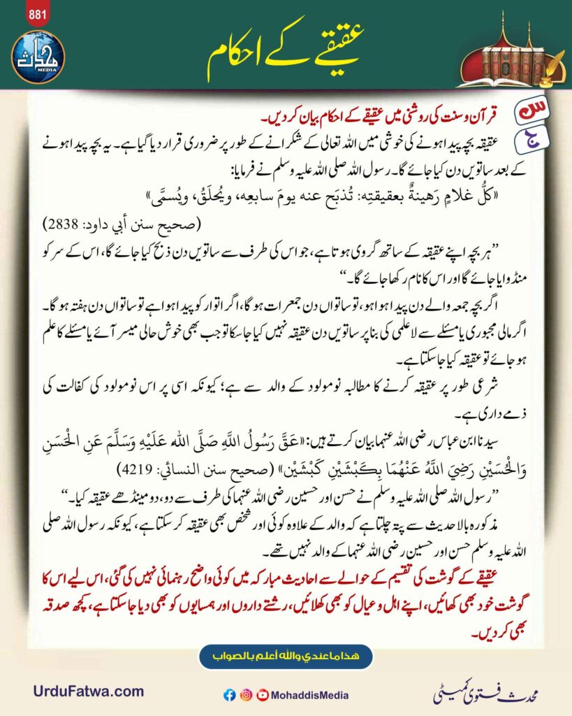 Post published: مارچ 5, 2026 Post category: فقہ وفتاویٰ ناشر: مرکز النور (محدث میڈیا) عقیقے کے احکام Post Views: 157 اس موضوع کے دیگر گرافکس مزید دیکھیں 176 بار دیکھا گیا طہارت وپاکیزگی تلاوت کیلئے وضو کرنا جنوری 30, 2024 208 بار دیکھا گیا فقہ وفتاویٰ سجدہ شکر کے احکامات مئی 29, 2025 117 بار دیکھا گیا عمرہ، حج وقربانی عورت کا ذبیحہ فروری 20, 2025 اس ناشر کے دیگر گرافکس مزید دیکھیں 230 بار دیکھا گیا اعمال، وظائف، اذکار وادعیہ سخت مصائب سے پناہ مانگنے کی دعا جنوری 26, 2024 161 بار دیکھا گیا 12. ذی الحجہ عشرہ ذوالحجہ کی فضیلت اکتوبر 9, 2025 232 بار دیکھا گیا فقہ وفتاویٰ عرس کے لیے کھانا تیار کرنا اپریل 8, 2025