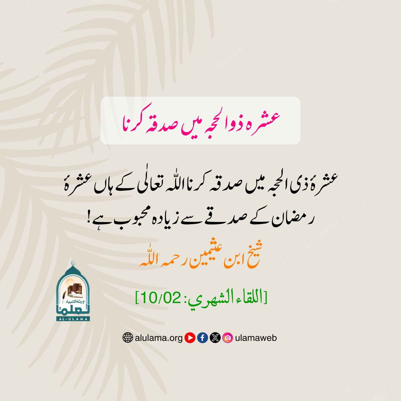 عشرہ ذوالحجہ میں صدقہ کرنا
