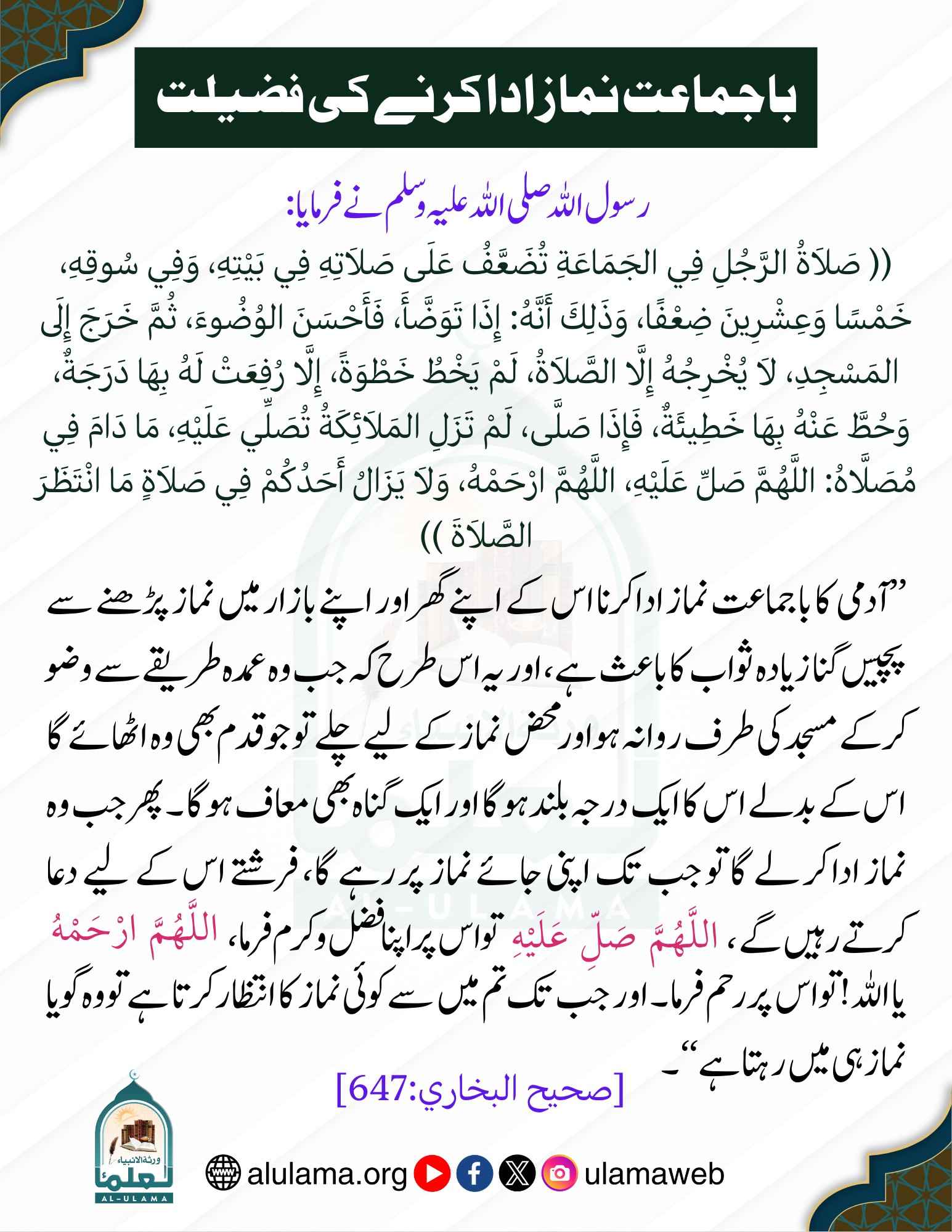 باجماعت نماز ادا کرنے کی فضیلت