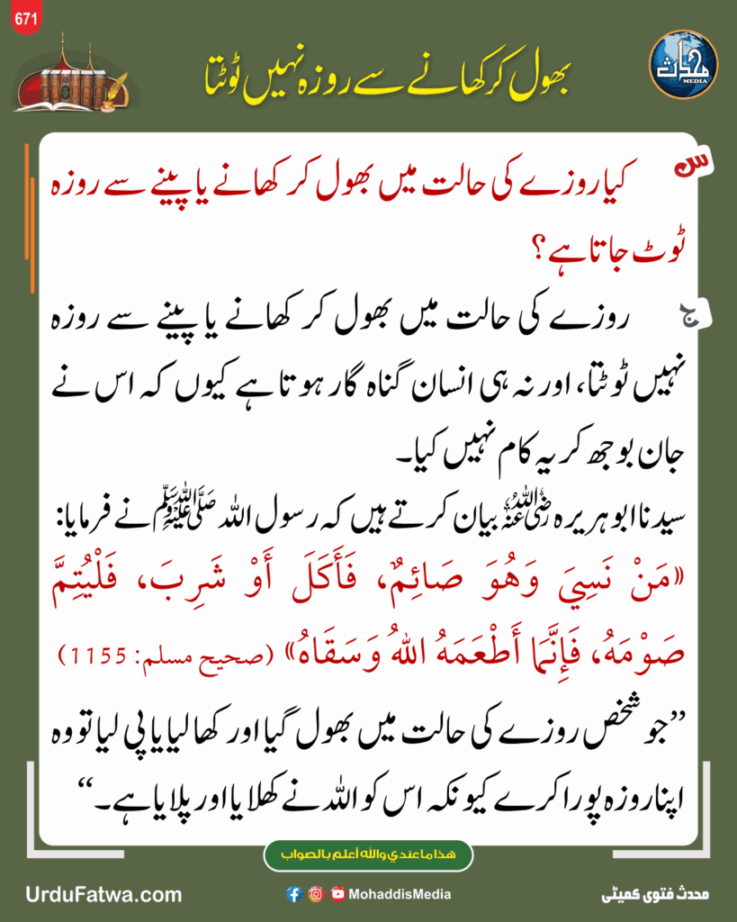 بھول کر کھانے سے روزہ نہیں ٹوٹتا
