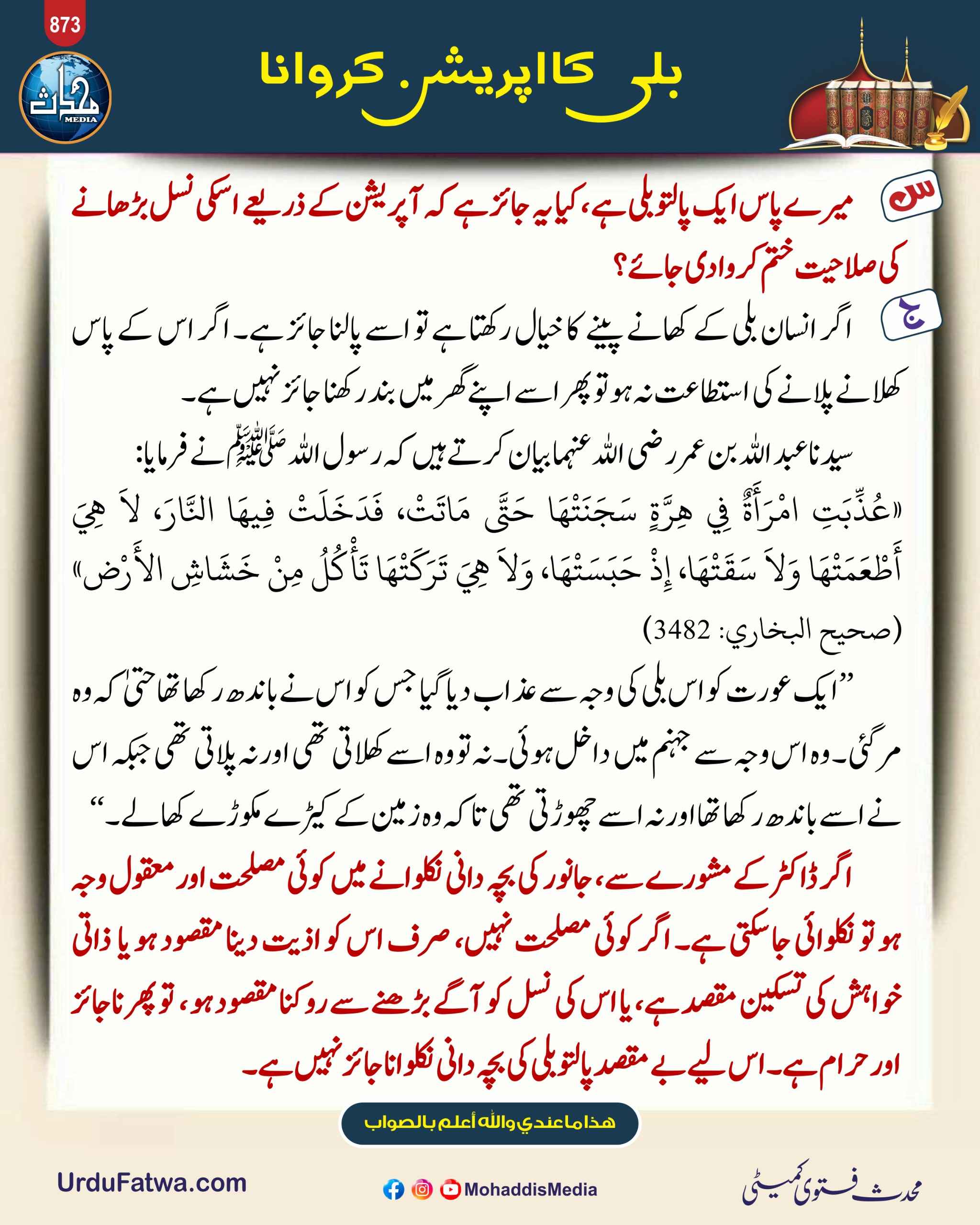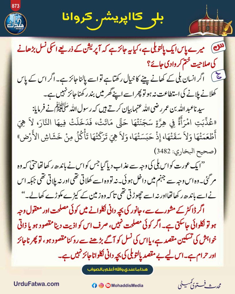 بلی کا اپریشن کروانا