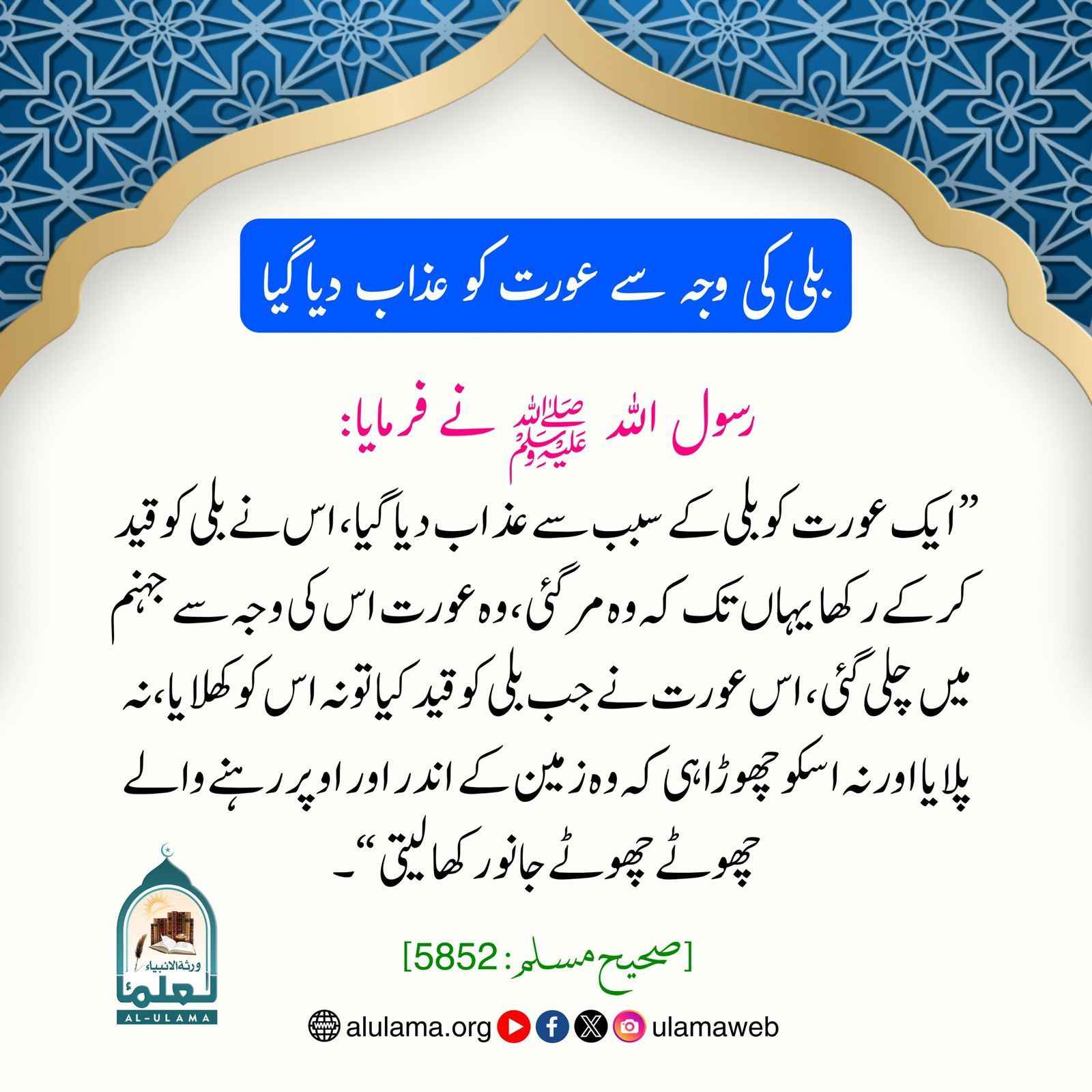 Post published: اپریل 2, 2026 Post category: جنت وجہنم - قیامت وآخرت - کبیرہ وصغیرہ گناہ ناشر: العلماء بلی کی وجہ سے عورت کو عذاب دیا گیا Post Views: 36 اس موضوع کے دیگر گرافکس مزید دیکھیں 201 بار دیکھا گیا توحید وشرک ایسے جانور کا گوشت نہ کھائیں مئی 15, 2025 183 بار دیکھا گیا آداب واخلاق امام ابن ہبیرہ رحمہ اللہ فرماتے ہیں مارچ 12, 2024 201 بار دیکھا گیا آداب واخلاق لوگوں کو بری راہ پر لگانے والے کا انجام جنوری 20, 2024 اس ناشر کے دیگر گرافکس مزید دیکھیں 232 بار دیکھا گیا اذان واقامت رسول اللہ ﷺ کی اذان کی آواز سننے پر کیفیت دسمبر 30, 2024 245 بار دیکھا گیا اصلاح معاشرہ نیکیوں کی حفاظت اور ان پر ہمیشگی نومبر 7, 2024 196 بار دیکھا گیا 06. جمادی الآخر رسول اللہ ﷺ کی مسکراہٹ ستمبر 12, 2024