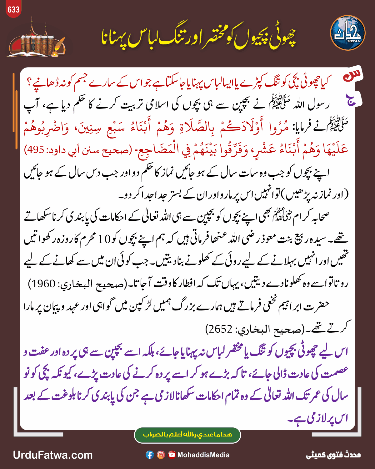 چھوٹی بچیوں کو مختصر اور تنگ لباس پہنانا