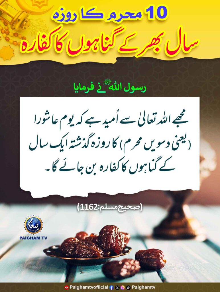 Post published: اگست 23, 2025 Post category: 01. محرم الحرام - فضائل ومسائل رمضان وروزہ - کبیرہ وصغیرہ گناہ ناشر: پیغام ٹی وی دس محرم کا روزہ سال بھر کے گناہوں کا کفارہ Post Views: 144 اس موضوع کے دیگر گرافکس مزید دیکھیں 126 بار دیکھا گیا 09. رمضان المبارک روزہ داروں کے لیے جنتی دروازہ الریان جون 25, 2024 265 بار دیکھا گیا 09. رمضان المبارک روزہ اور قرآن سفارش کریں گے جولائی 26, 2025 177 بار دیکھا گیا 01. محرم الحرام حضرت حسن و حسین رضی اللہ عنہما سے جبریل علیہ السلام بھی پیار کرتے تھے ستمبر 27, 2024 اس ناشر کے دیگر گرافکس مزید دیکھیں 283 بار دیکھا گیا 12. ذی الحجہ عرفہ کے دن کی دعا اگست 23, 2025 202 بار دیکھا گیا اعمال، وظائف، اذکار وادعیہ صرف نیت بدلنے سے اتنا ثواب اگست 30, 2025 203 بار دیکھا گیا آداب واخلاق تم سب آدم کی اولاد ہو جولائی 3, 2024