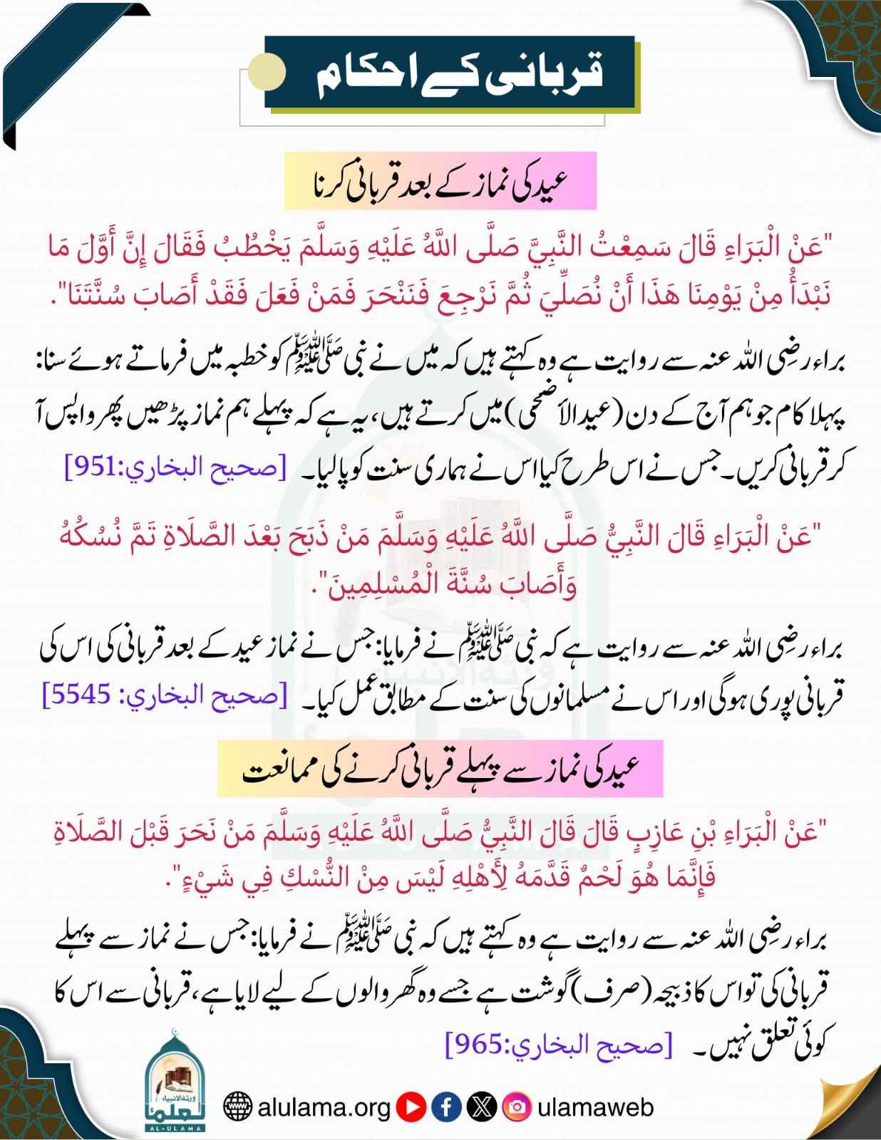 عید کی نماز کے بعد قربانی کرنا