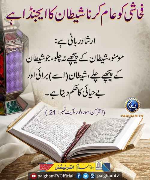 فحاشی کو عام کرنا شیطان کا ایجنڈا ہے