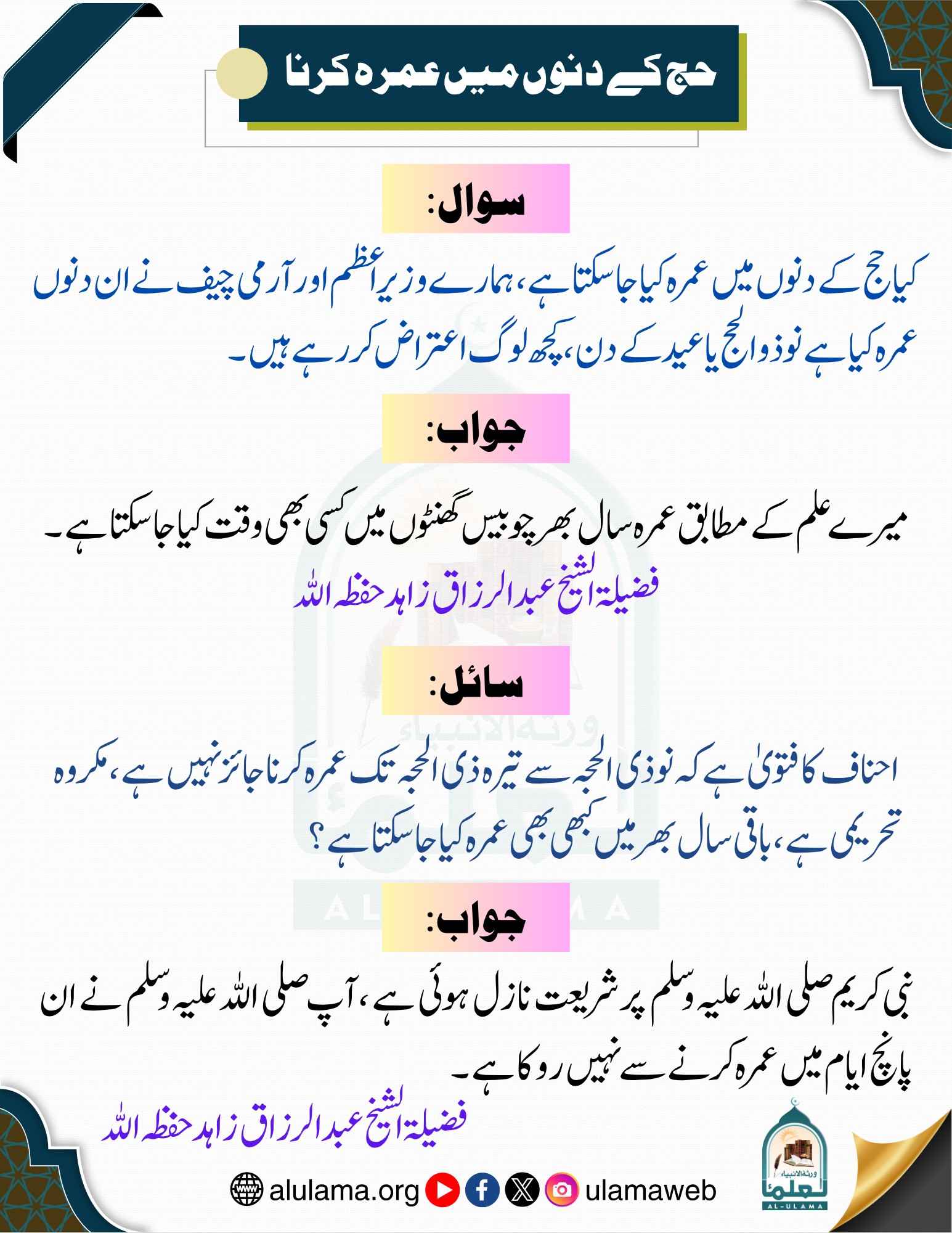 Post published: اپریل 16, 2026 Post category: 12. ذی الحجہ - اعمال، وظائف، اذکار وادعیہ - عمرہ، حج وقربانی ناشر: العلماء حج کے دنوں میں عمرہ کرنا Post Views: 11 اس موضوع کے دیگر گرافکس مزید دیکھیں 177 بار دیکھا گیا 10. شوال المکرم عید کی مبارکباد دینا دسمبر 31, 2024 477 بار دیکھا گیا آداب واخلاق اذان اور اقامت کے درمیان دعا اکتوبر 13, 2023 604 بار دیکھا گیا اعمال، وظائف، اذکار وادعیہ دعا کی قبولیت کا وظیفہ فروری 14, 2025 اس ناشر کے دیگر گرافکس مزید دیکھیں 196 بار دیکھا گیا اصلاح معاشرہ قادیانی ڈاکٹر سے علاج کروانا جنوری 20, 2025 118 بار دیکھا گیا طب نبوی وحکمت تربوز گرمی کا توڑ نومبر 9, 2024 237 بار دیکھا گیا 06. جمادی الآخر نبی کریم ﷺ کی فضیلت جولائی 31, 2025