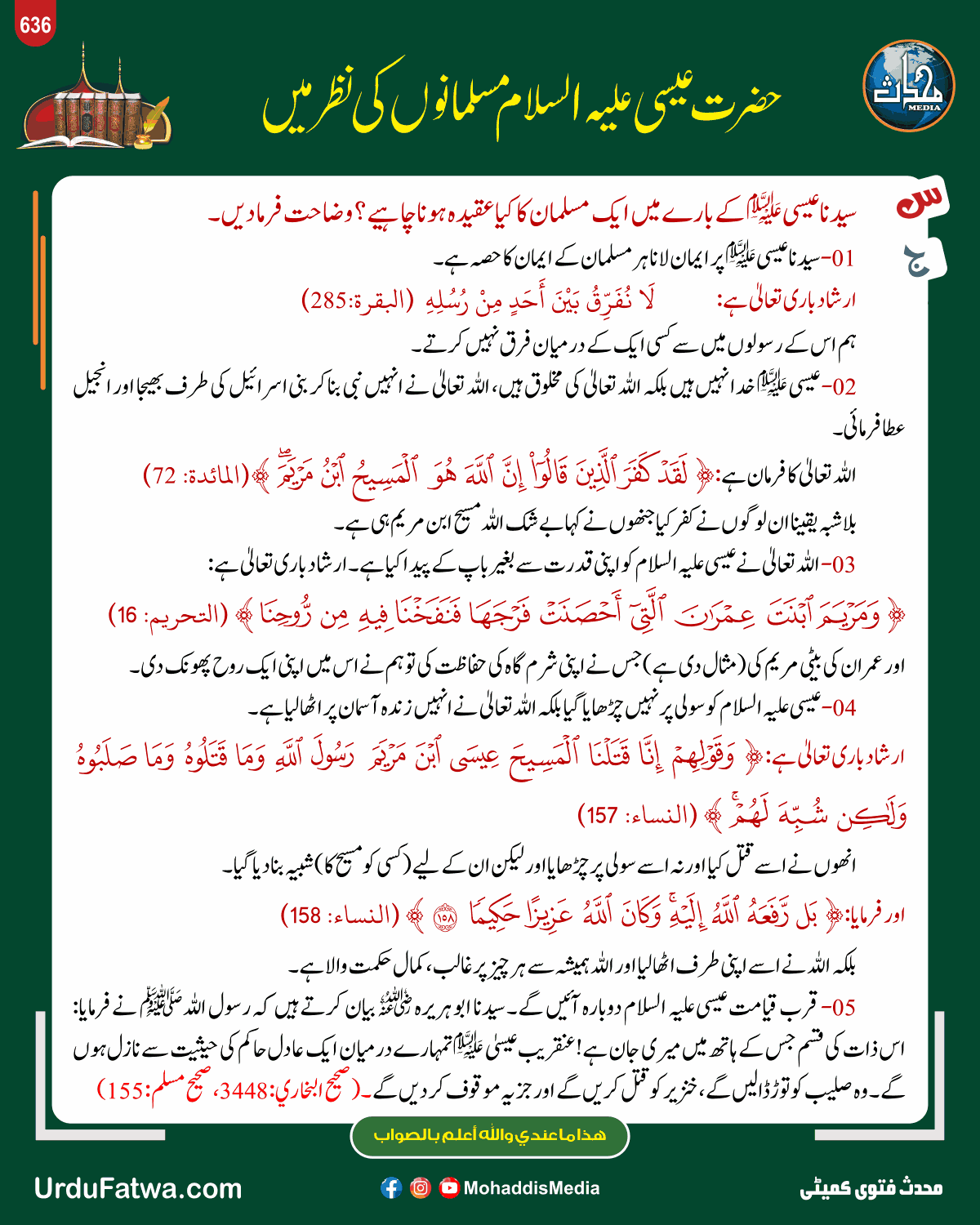 Post published: مئی 13, 2025 Post category: انبیاء ورسل - فقہ وفتاویٰ ناشر: مرکز النور (محدث میڈیا) حضرت عیسی علیہ السلام مسلمانوں کی نظر میں Post Views: 364 اس موضوع کے دیگر گرافکس مزید دیکھیں 335 بار دیکھا گیا احکام ومسائل نماز اگر تیمم کر کے نماز پڑھنے کے بعد پانی میسر آ جائے مئی 13, 2025 145 بار دیکھا گیا فقہ وفتاویٰ آرائش کے لیے لگائی گئی تصاویر کا حکم اپریل 24, 2025 182 بار دیکھا گیا فقہ وفتاویٰ عورت کا عورت کی محرم بننا مارچ 3, 2025 اس ناشر کے دیگر گرافکس مزید دیکھیں 402 بار دیکھا گیا آداب واخلاق اہل علم ودانش کی ہم نشینی فروری 12, 2024 113 بار دیکھا گیا اصلاح معاشرہ نبی کریم کا کھانا مبارک جنوری 19, 2024 353 بار دیکھا گیا آداب واخلاق عبادت الہی میں تکبر کا انجام جنوری 23, 2024