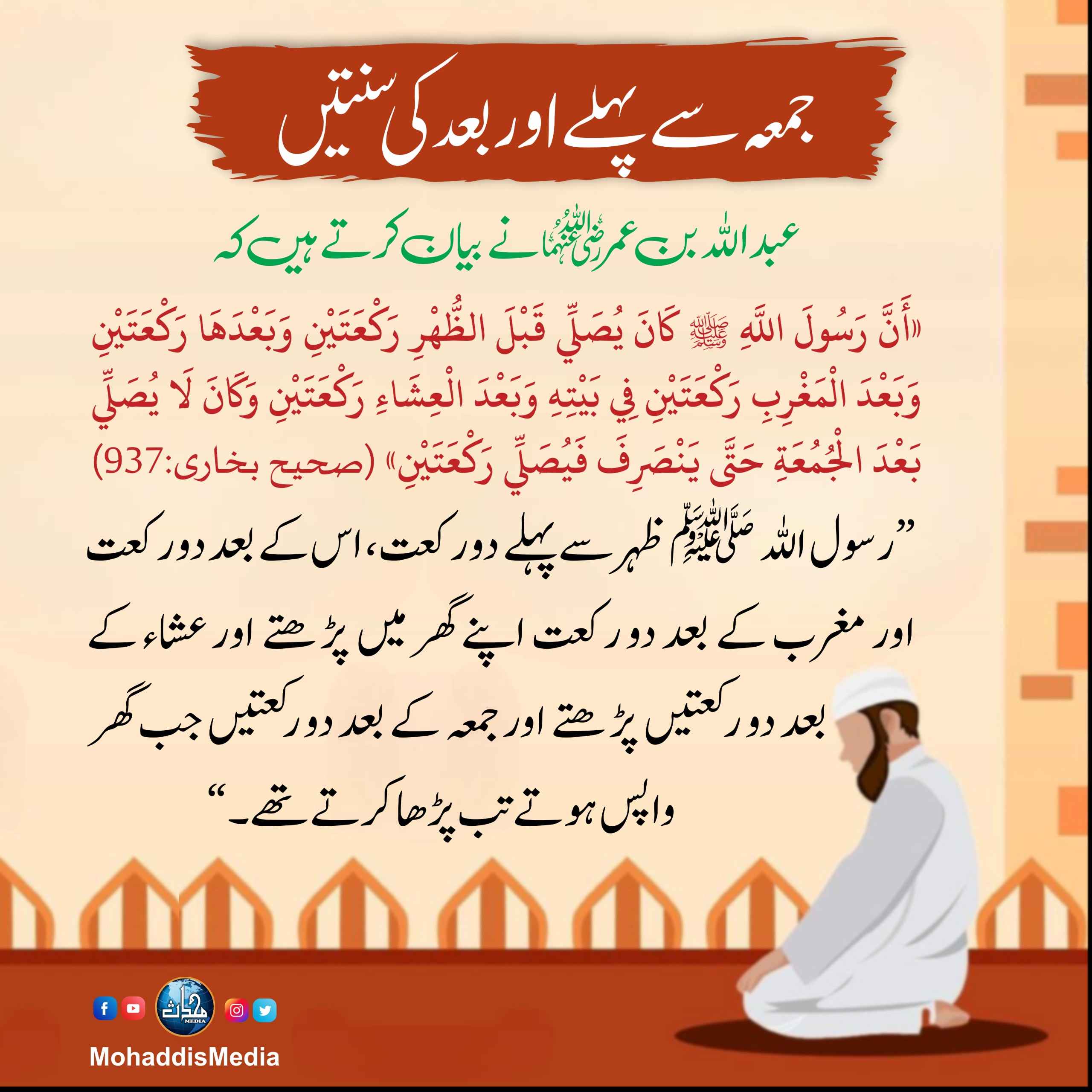 Post published: فروری 16, 2026 Post category: سنتیں نوافل نماز وتر تہجد و تراویح - نماز جمعہ احکام ومسائل ناشر: مرکز النور (محدث میڈیا) جمعہ سے پہلے اور بعد کی سنتیں Post Views: 72 اس موضوع کے دیگر گرافکس مزید دیکھیں 135 بار دیکھا گیا اعمال، وظائف، اذکار وادعیہ فجر کی دو سنتیں دنیا اور جو کچھ دنیا میں ہے اس سے بہتر ہے اگست 14, 2024 198 بار دیکھا گیا آداب واخلاق نماز جمعہ کے لیے پہلے جانے کا اجر جون 13, 2024 619 بار دیکھا گیا توبہ واستغفار جمعہ کی فضیلت نومبر 5, 2024 اس ناشر کے دیگر گرافکس مزید دیکھیں 220 بار دیکھا گیا اعمال، وظائف، اذکار وادعیہ نبی کریم ﷺ کے محبوب کلمات اکتوبر 4, 2025 348 بار دیکھا گیا فقہ وفتاویٰ ٹخنوں سے نیچے کپڑا لٹکانے کا شرعی حکم مئی 3, 2025 146 بار دیکھا گیا ارشاد باری تعالٰی دنیا کی زندگی ایک کھیل تماشہ ستمبر 29, 2025