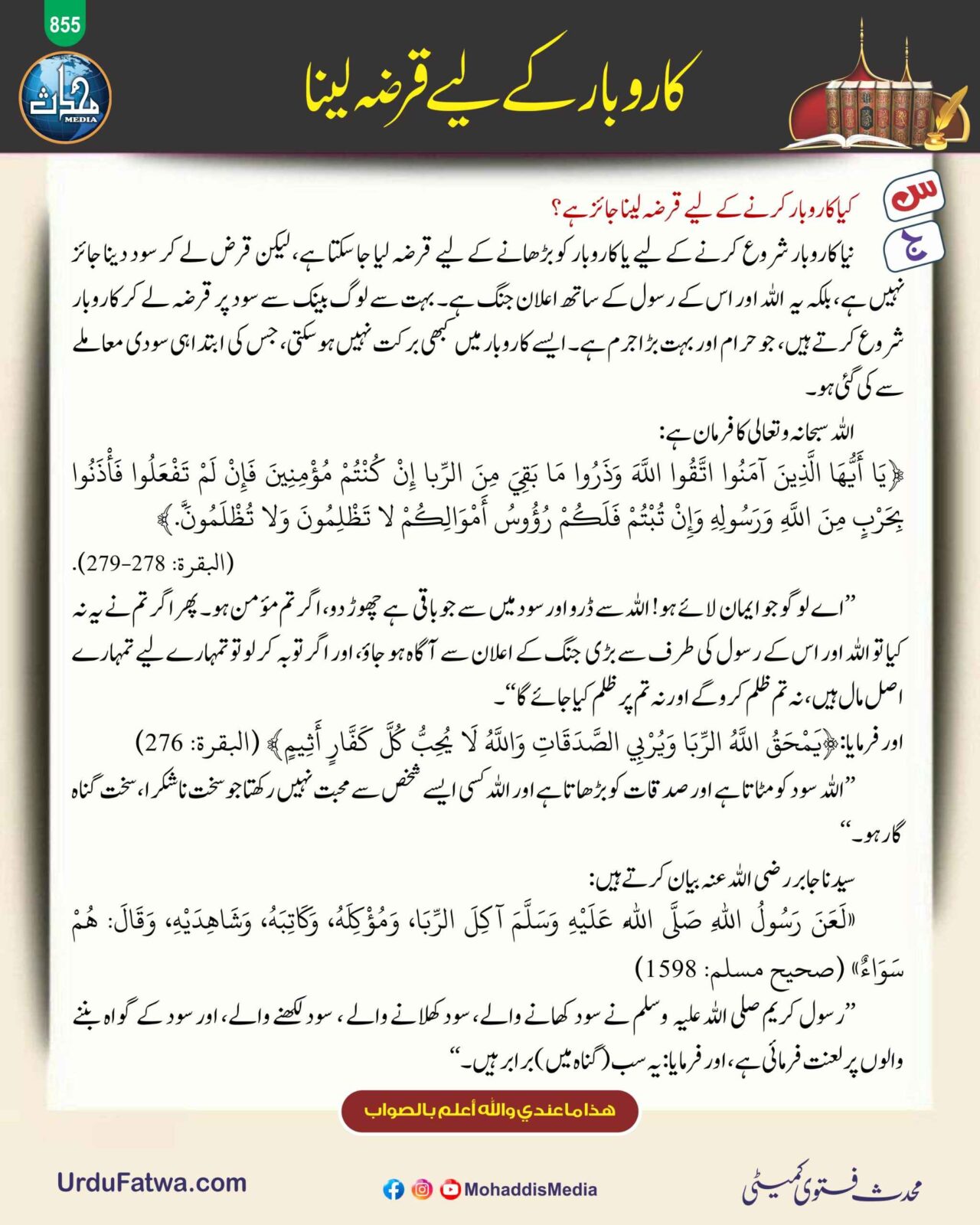 Post published: نومبر 18, 2025 Post category: خرید وفروخت وتجارت - فقہ وفتاویٰ ناشر: مرکز النور (محدث میڈیا) کاروبار کے لیے قرضہ لینا Post Views: 152 اس موضوع کے دیگر گرافکس مزید دیکھیں 192 بار دیکھا گیا خواتین کے احکام ومسائل عورتوں کا جمعہ کے لیے مسجد جانا جولائی 5, 2025 354 بار دیکھا گیا تقلید واجتہاد کسی امام کی اندھی تقلید کرنا جائز نہیں ہے مئی 16, 2025 201 بار دیکھا گیا فقہ وفتاویٰ وٹہ سٹہ کی شادی کی قباحتیں اگست 27, 2024 اس ناشر کے دیگر گرافکس مزید دیکھیں 89 بار دیکھا گیا English Graphics The prophet muhammah ﷺ said فروری 19, 2026 135 بار دیکھا گیا توبہ واستغفار توبہ کرنے کا آخری وقت جنوری 26, 2024 144 بار دیکھا گیا اصلاح معاشرہ جھوٹ کا انجام جھنم دسمبر 13, 2025
