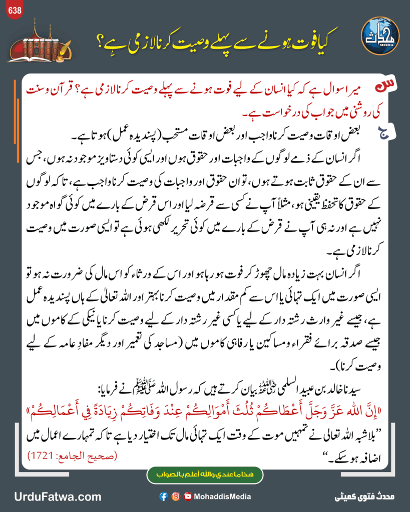 Post published: مئی 13, 2025 Post category: فقہ وفتاویٰ - وراثت ووصیت ناشر: مرکز النور (محدث میڈیا) کیا فوت ہونے سے پہلے وصیت کرنا لازمی ہے Post Views: 113 اس موضوع کے دیگر گرافکس مزید دیکھیں 342 بار دیکھا گیا جنت وجہنم ہمیشہ جہنم میں رہنے والے بدبخت لوگ مئی 8, 2025 244 بار دیکھا گیا 09. رمضان المبارک روزے کو باطل کرنے والے امور فروری 18, 2025 202 بار دیکھا گیا زکوۃ، صدقات وعشر بارش اور چشموں سے پرورش پانے والی فصل کا عشر مئی 1, 2025 اس ناشر کے دیگر گرافکس مزید دیکھیں 283 بار دیکھا گیا 19. حالات حاضرہ سیلاب زدگان کی مدد کیجیئے ستمبر 16, 2025 85 بار دیکھا گیا 18. متفرق احکام ومسائل بارش کے باوجود اناج کی قلت جنوری 13, 2024 176 بار دیکھا گیا انگلش گرافکس characteristics of believers نومبر 19, 2025