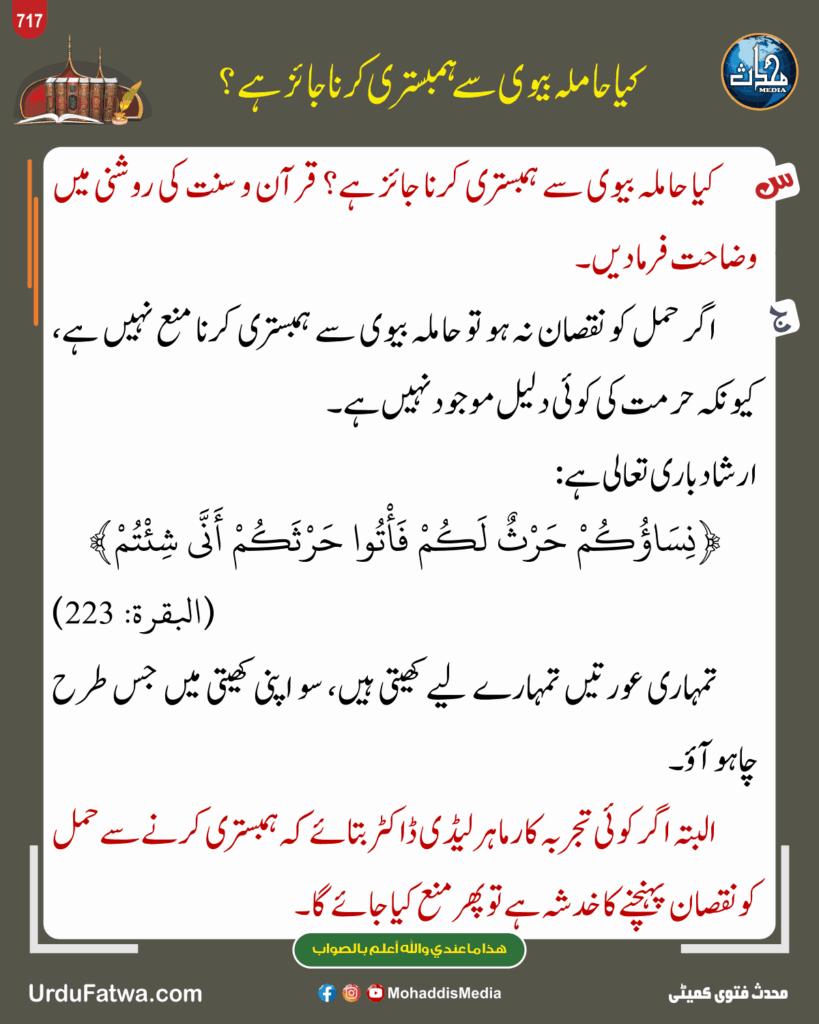 Post published: مئی 21, 2025 Post category: فقہ وفتاویٰ - میاں، بیوی اور اولاد ناشر: مرکز النور (محدث میڈیا) کیا حاملہ بیوی سے ہمبستری کرنا جائز ہے Post Views: 462 اس موضوع کے دیگر گرافکس مزید دیکھیں 42 بار دیکھا گیا فقہ وفتاویٰ وصیت کے صحیح ہونے کی شرائط کیا ہیں فروری 20, 2026 363 بار دیکھا گیا آداب واخلاق بیوی کے ساتھ نرمی اور حسن سلوک ستمبر 30, 2025 91 بار دیکھا گیا 09. رمضان المبارک غروب آفتاب سے نصف گھنٹہ پہلے ہوائی جہاز نے پرواز شروع کی اپریل 15, 2025 اس ناشر کے دیگر گرافکس مزید دیکھیں 133 بار دیکھا گیا 18. متفرق احکام ومسائل مقدس اشیاء کو بیت الخلاء میں لے جانا دسمبر 27, 2023 137 بار دیکھا گیا خواتین کے احکام ومسائل دوران جمعہ ایام آنا مارچ 19, 2025 258 بار دیکھا گیا اعمال، وظائف، اذکار وادعیہ اعمال کا دارو مدار نیتوں پر ہے جنوری 31, 2024