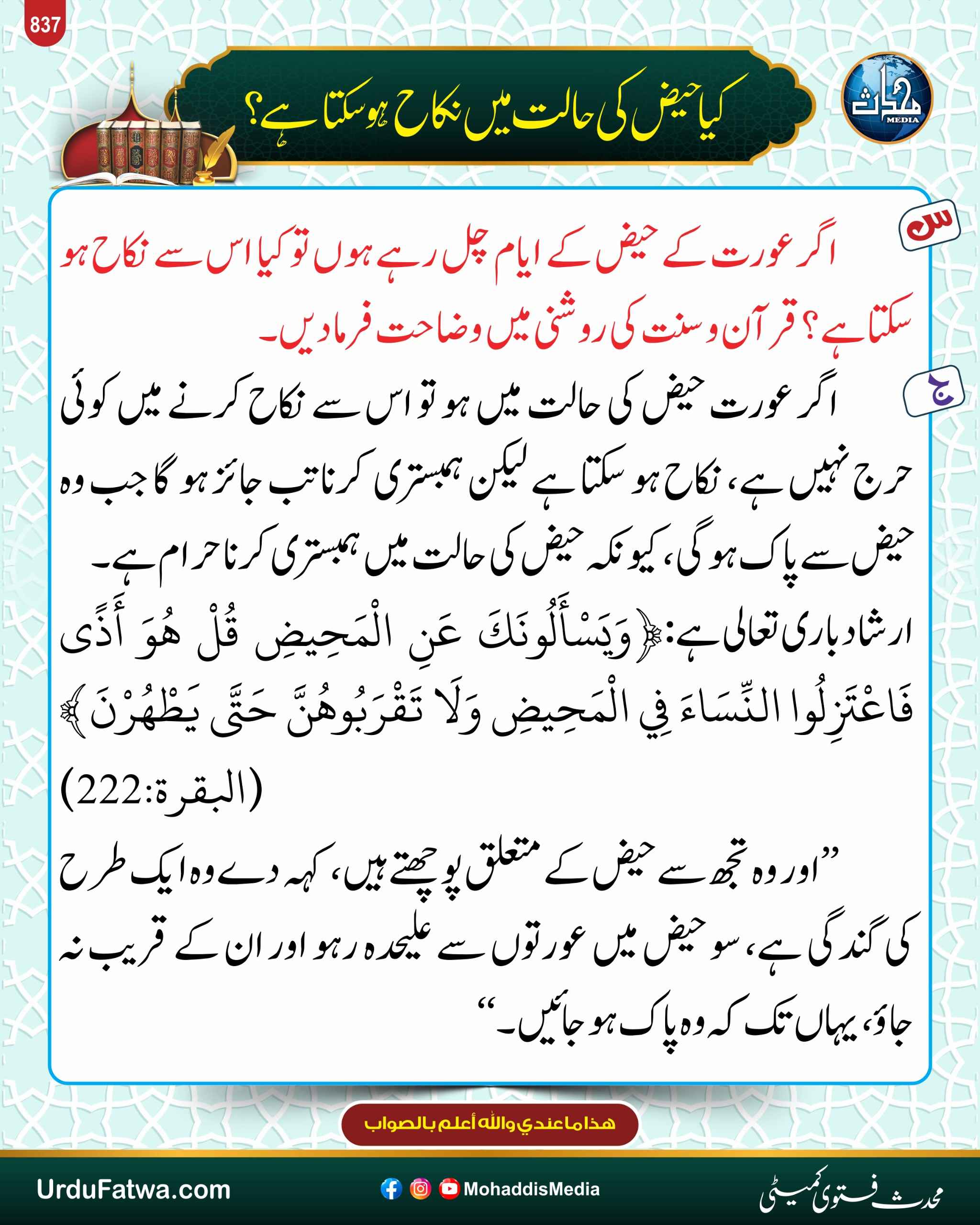 Post published: فروری 16, 2026 Post category: خواتین کے احکام ومسائل - فقہ وفتاویٰ ناشر: مرکز النور (محدث میڈیا) کیا حیض کی حالت میں نکاح ہو سکتا ہے؟ Post Views: 59 اس موضوع کے دیگر گرافکس مزید دیکھیں 196 بار دیکھا گیا 09. رمضان المبارک روزے دار کا بھول کر کھانا پینا اپریل 9, 2025 389 بار دیکھا گیا بدعات ورسومات بدعت اور بدعتیوں کی مذمت احادیث مبارکہ سے مئی 3, 2025 287 بار دیکھا گیا فقہ وفتاویٰ تہجد میں قرآن مجید کی تلاوت کیسے کی جائے گی مئی 29, 2025 اس ناشر کے دیگر گرافکس مزید دیکھیں 161 بار دیکھا گیا اعمال، وظائف، اذکار وادعیہ ہمارے اعمال کیسے قبول ہو سکتے ہیں مئی 1, 2025 122 بار دیکھا گیا آداب واخلاق مسلمان بھائی کی تحقیر کی ممانعت دسمبر 9, 2025 329 بار دیکھا گیا اقوال سلف صالحین نور قرآن جنت کی سیڑھی اکتوبر 29, 2025