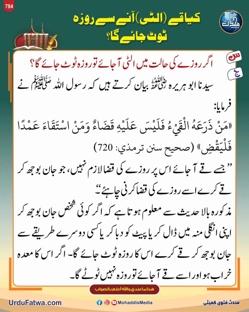 کیا قے آنے سے روزہ ٹوٹ جائے گا