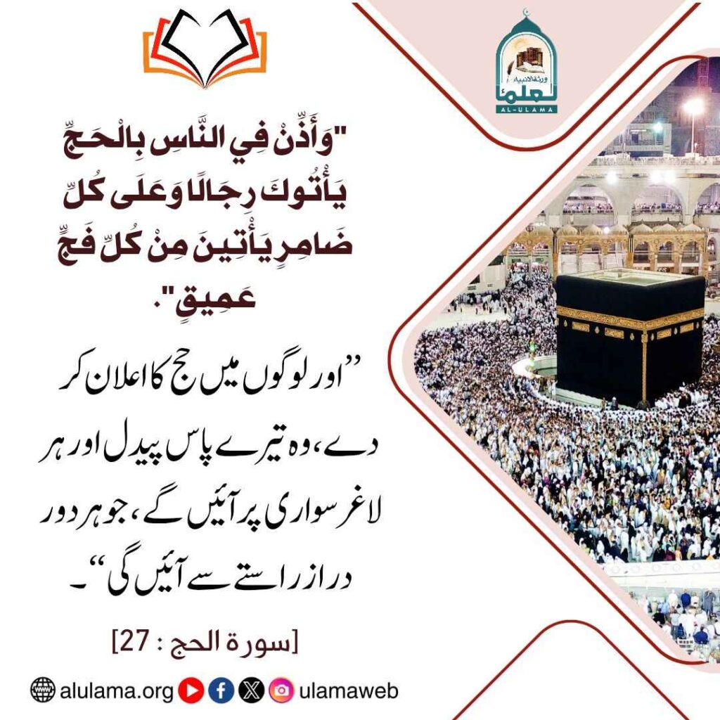 Post published: اپریل 4, 2026 Post category: 12. ذی الحجہ - عمرہ، حج وقربانی ناشر: العلماء لوگوں میں حج کا اعلان کرو Post Views: 28 اس موضوع کے دیگر گرافکس مزید دیکھیں 256 بار دیکھا گیا خواتین کے احکام ومسائل خاوند کے فوت ہونے کی صورت میں عورت کا حج اپریل 14, 2025 205 بار دیکھا گیا عمرہ، حج وقربانی طواف سے پہلے سعی کرنا کیسا ہے اپریل 15, 2025 219 بار دیکھا گیا عمرہ، حج وقربانی پنتالیس سال سے زائد عمر عورت کا بغیر محرم حج کرنا فروری 20, 2025 اس ناشر کے دیگر گرافکس مزید دیکھیں 187 بار دیکھا گیا اعمال، وظائف، اذکار وادعیہ اللہ تعالی بہت با حیا ہے ستمبر 3, 2024 77 بار دیکھا گیا حقوق وفرائض تقسیم وراثت میں کسی کو نقصان پہنچانا اگست 27, 2024 295 بار دیکھا گیا 23. عربی گرافکس نصرت بالرعب مسيرة شهر اگست 23, 2024