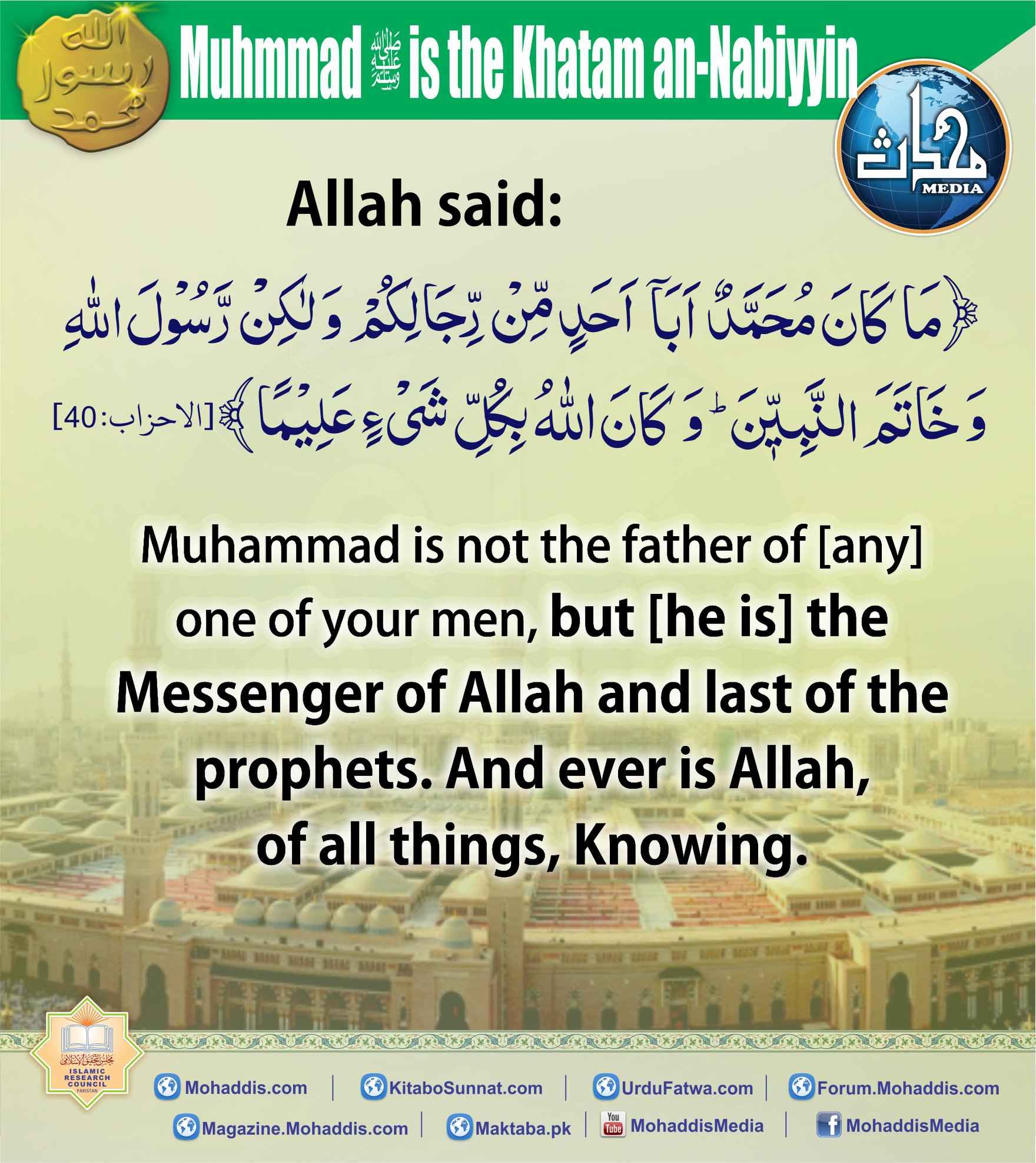Post published: جنوری 3, 2026 Post category: English Graphics ناشر: مرکز النور (محدث میڈیا) Muhammad is the Khatam an-Nabiyyin Post Views: 20 اس موضوع کے دیگر گرافکس مزید دیکھیں 28 بار دیکھا گیا English Graphics Allah Said جنوری 3, 2026 52 بار دیکھا گیا English Graphics The Purpose of Coming of The Prophet’s جنوری 1, 2026 35 بار دیکھا گیا English Graphics Glad Tiding for a Philanthropist دسمبر 23, 2025 اس ناشر کے دیگر گرافکس مزید دیکھیں 19 بار دیکھا گیا English Graphics Virtue of the one sent as a Mercy for the Worlds جنوری 3, 2026 121 بار دیکھا گیا فقہ وفتاویٰ بچوں میں مساوات مارچ 19, 2025 64 بار دیکھا گیا 09. رمضان المبارک روزے دار کا قے کرنا جنوری 3, 2024
