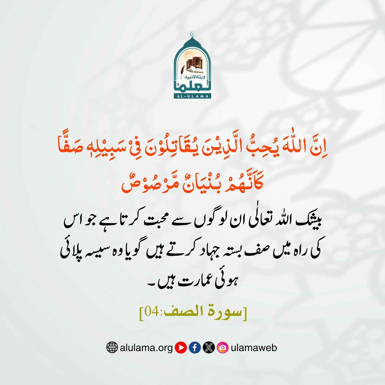 Post published: اپریل 1, 2026 Post category: ارشاد باری تعالٰی - جہاد ،شہادت وشہداء ناشر: العلماء مجاہدین سے اللہ کی محبت Post Views: 36 اس موضوع کے دیگر گرافکس مزید دیکھیں 297 بار دیکھا گیا جہاد ،شہادت وشہداء اگر اللہ تمہاری مدد کرے تو کوئی تم پر غالب آنے والا نہیں دسمبر 16, 2024 103 بار دیکھا گیا ارشاد باری تعالٰی اللہ تعالی کی آیات کا انکار کرنے والے کون؟ اکتوبر 3, 2025 113 بار دیکھا گیا ارشاد باری تعالٰی ہدایت یافتہ لوگوں کے لیے مزید انعام اکتوبر 2, 2025 اس ناشر کے دیگر گرافکس مزید دیکھیں 17 بار دیکھا گیا اعمال، وظائف، اذکار وادعیہ رسول اللہ ﷺ جب غزوات پر نکلتے تو فرماتے اپریل 1, 2026 190 بار دیکھا گیا اعمال، وظائف، اذکار وادعیہ غبار آلود قدم اور نجات جنوری 23, 2025 184 بار دیکھا گیا آداب واخلاق نیک آدمی بخیل نہیں ہوتا جولائی 15, 2024