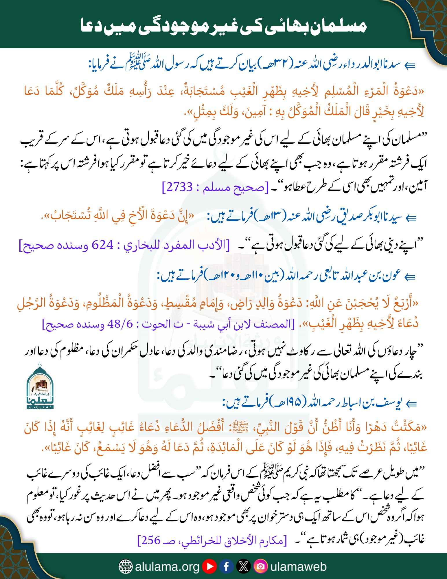 مسلمان بھائی کی غیر موجودگی میں دعا