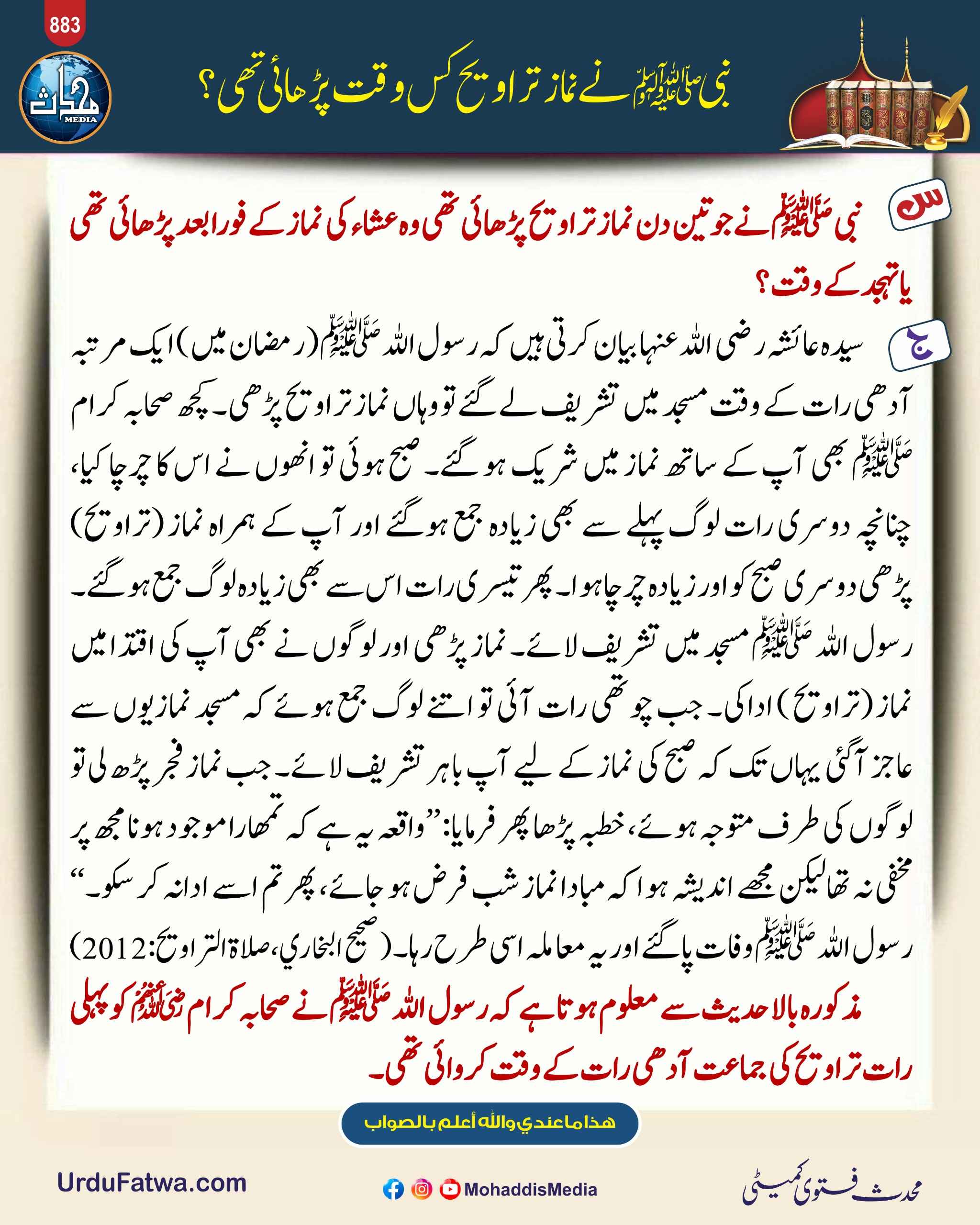نبی ﷺ نے نماز تراویح کس وقت پڑھائی تھی