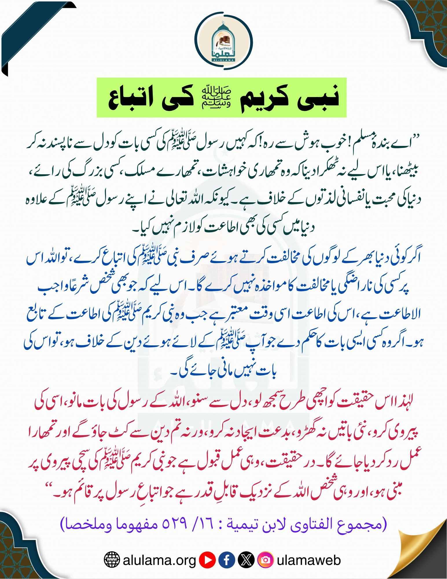 Post published: اپریل 16, 2026 Post category: آداب واخلاق - اطاعت واتباع رسول ناشر: العلماء نبی کریم ﷺ کی اتباع Post Views: 5 اس موضوع کے دیگر گرافکس مزید دیکھیں 317 بار دیکھا گیا آداب واخلاق نیکی کے کاموں میں دیر نہ کریں اکتوبر 18, 2024 201 بار دیکھا گیا آداب واخلاق کھاؤ اور پیو اور اسراف نہ کرو ستمبر 10, 2024 21 بار دیکھا گیا آداب واخلاق محب رسول ﷺ پر غربت کی آزمائش مارچ 31, 2026 اس ناشر کے دیگر گرافکس مزید دیکھیں 149 بار دیکھا گیا آداب واخلاق نماز کے لیے اطمینان سے چل کر آئیں ستمبر 18, 2024 162 بار دیکھا گیا اصلاح معاشرہ اللہ کی طرف سے ڈھیل نومبر 19, 2024 176 بار دیکھا گیا زکوۃ، صدقات وعشر فطرانہ کس کو دیا جائے جولائی 30, 2025