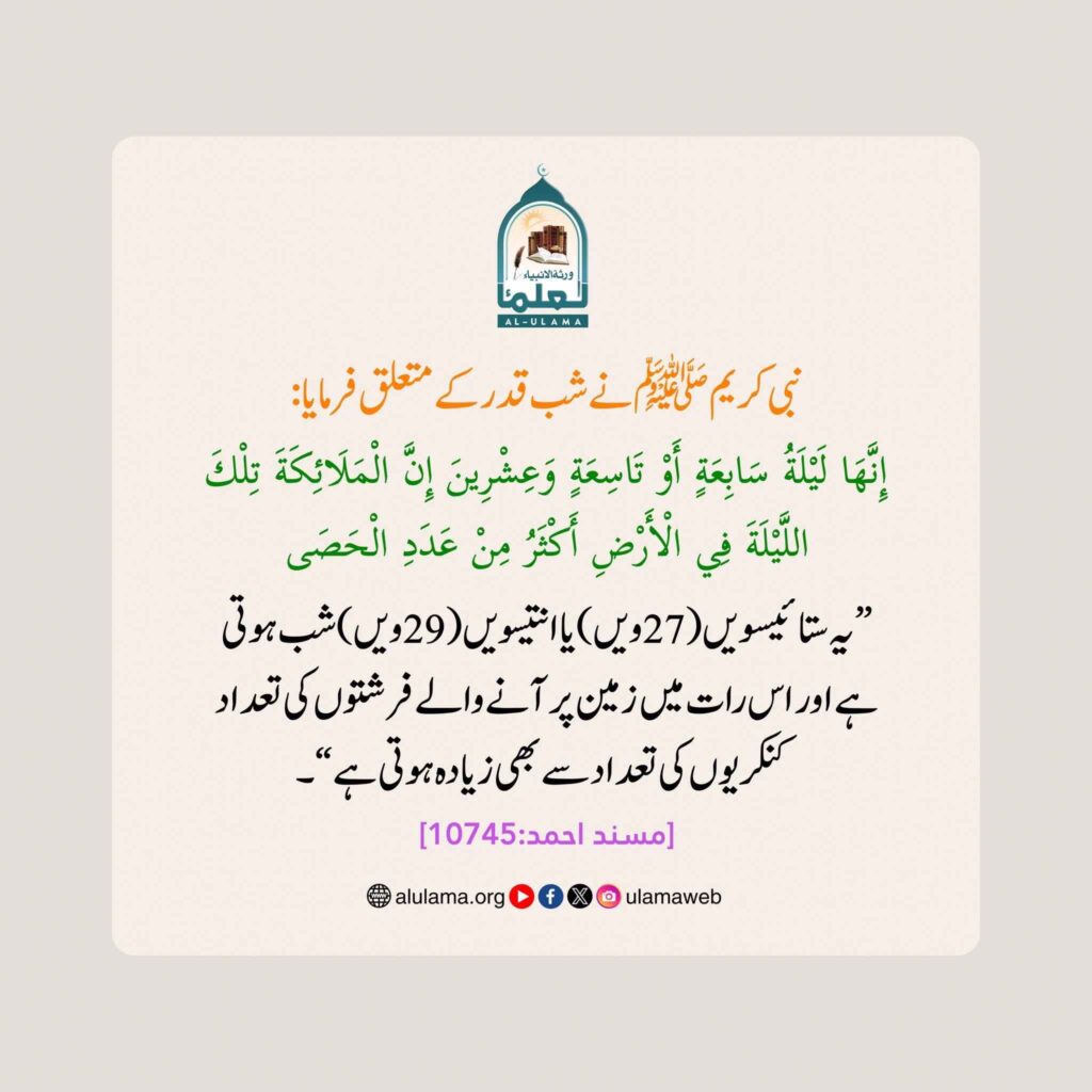 Post published: اپریل 21, 2026 Post category: 09. رمضان المبارک - اعمال، وظائف، اذکار وادعیہ - سنتیں نوافل نماز وتر تہجد و تراویح - فضائل ومسائل رمضان وروزہ ناشر: العلماء نبی کریم ﷺ نے شب قدر کے متعلق فرمایا Post Views: 41 اس موضوع کے دیگر گرافکس مزید دیکھیں 254 بار دیکھا گیا اعمال، وظائف، اذکار وادعیہ اندھیروں میں مسجدوں کی طرف جانے والے اکتوبر 18, 2024 119 بار دیکھا گیا 09. رمضان المبارک روزے دار کا قے کرنا جنوری 3, 2024 151 بار دیکھا گیا اطاعت واتباع رسول اے اللہ! ہمیں سنت کا عامل بنا اکتوبر 21, 2024 اس ناشر کے دیگر گرافکس مزید دیکھیں 513 بار دیکھا گیا آداب واخلاق رات کو آنکھ کھلنے پر دعا اکتوبر 17, 2024 164 بار دیکھا گیا اصلاح معاشرہ پانچ امور سے پہلے پانچ امور کو غنیمت جانو جولائی 18, 2024 344 بار دیکھا گیا آداب واخلاق کھانے پینے کے آداب جولائی 24, 2024