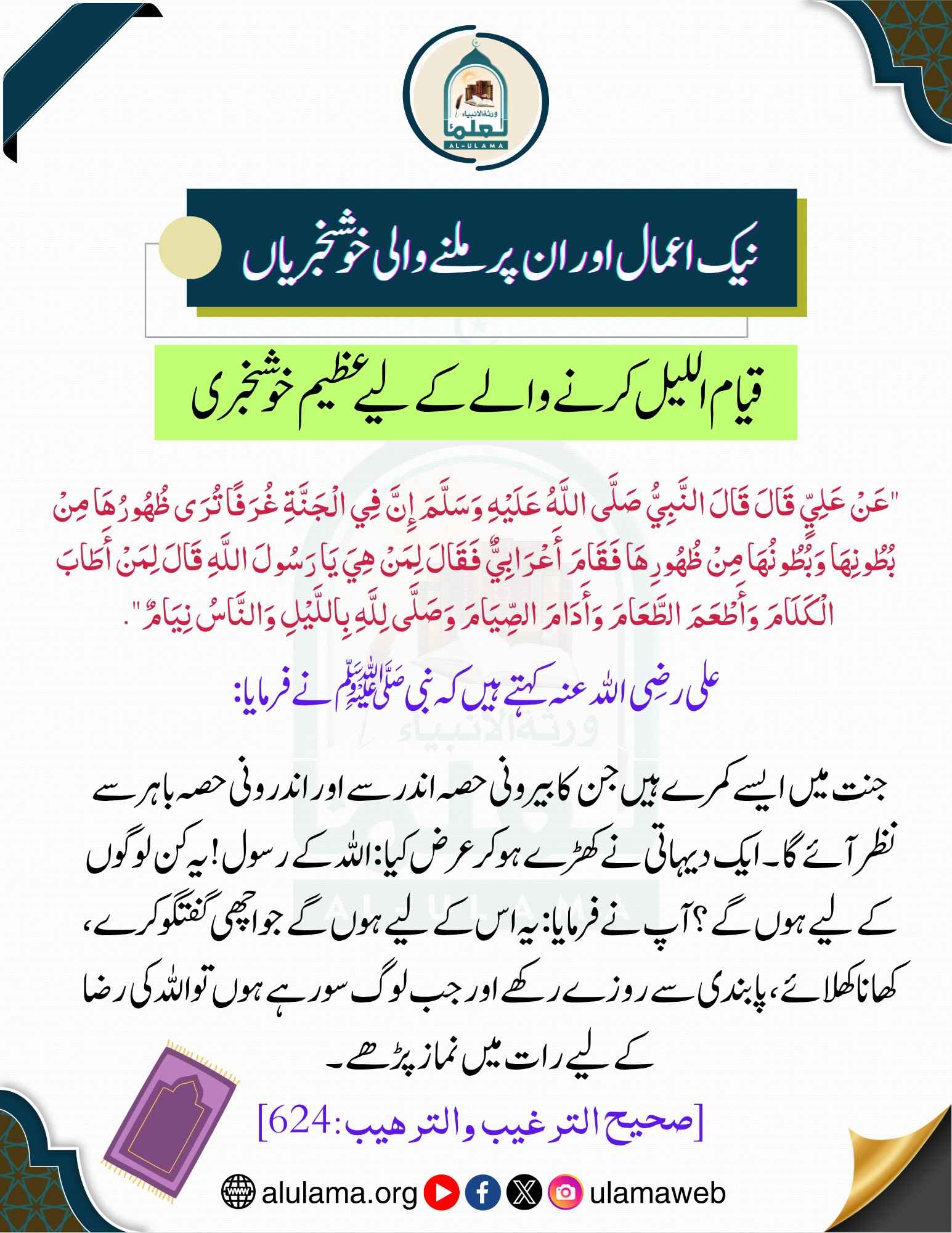 نیک اعمال اور ان پر ملنے والی خوشخبریاں