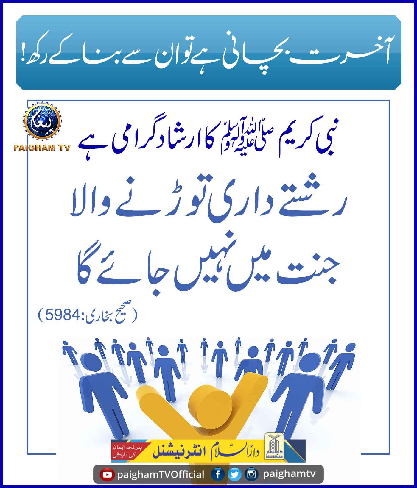 رشتے داری توڑنے والا جنت میں نہیں جائے گا