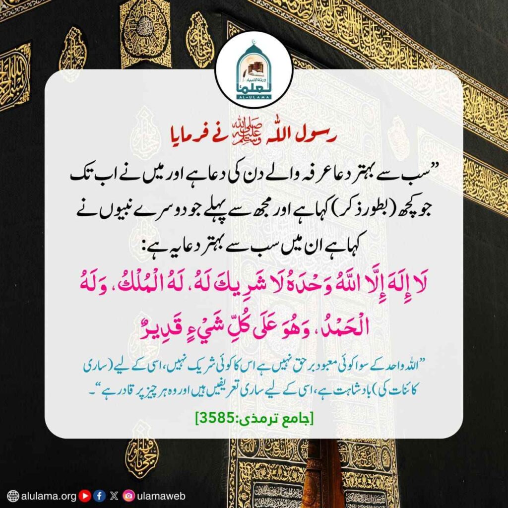Post published: اپریل 15, 2026 Post category: 12. ذی الحجہ - آداب واخلاق - اعمال، وظائف، اذکار وادعیہ - تذکار ایام ناشر: العلماء سب سے بہتر دعا عرفہ والے دن کی دعا ہے Post Views: 8 اس موضوع کے دیگر گرافکس مزید دیکھیں 17 بار دیکھا گیا 12. ذی الحجہ ذوالحجہ کا چاند نظر آنے سے پہلے ناخن اور بال تراش لینا اپریل 6, 2026 69 بار دیکھا گیا 08. شعبان المعظم ماہ شعبان کے روزے اکتوبر 23, 2024 280 بار دیکھا گیا اعمال، وظائف، اذکار وادعیہ قیامت کے دن رسول اللہ ﷺ کے سب سے زیادہ قریب نومبر 16, 2024 اس ناشر کے دیگر گرافکس مزید دیکھیں 129 بار دیکھا گیا 06. جمادی الآخر جمعے کے دن مجھ پر کثرت سے درود پڑھو جولائی 15, 2024 127 بار دیکھا گیا 01. محرم الحرام شھادت عمر فاروق رضی اللہ عنہ ستمبر 23, 2024 141 بار دیکھا گیا 09. رمضان المبارک افطار کا وقت غروب آفتاب جولائی 26, 2025