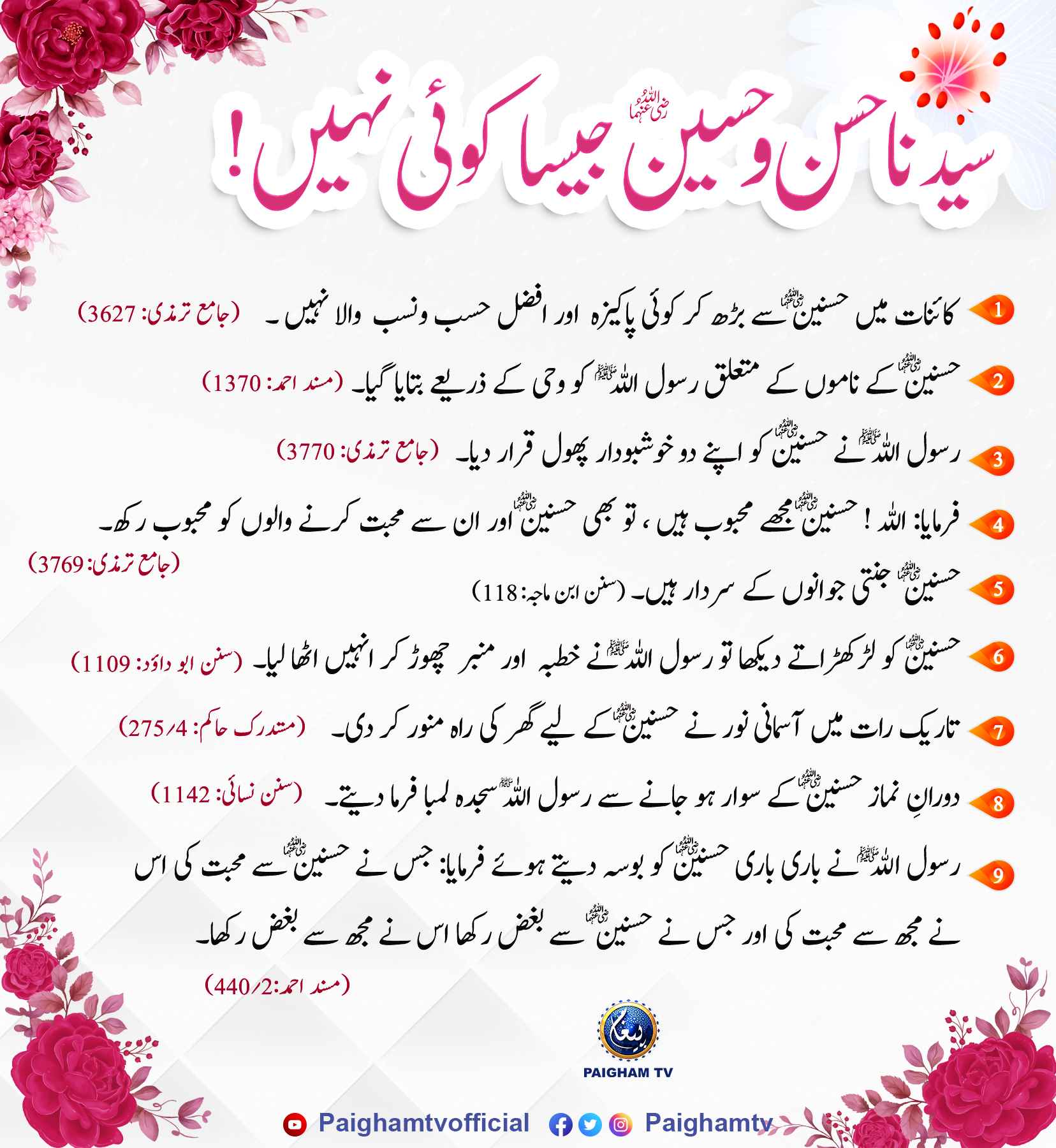 Post published: اگست 23, 2025 Post category: 01. محرم الحرام - سیرت اہل بیت ناشر: پیغام ٹی وی سیدنا حسن و حسین جیسا کوئی نہیں Post Views: 71 اس موضوع کے دیگر گرافکس مزید دیکھیں 160 بار دیکھا گیا 01. محرم الحرام نبی کریم ﷺ کی ازواج اہل بیت ہیں اگست 7, 2025 64 بار دیکھا گیا 01. محرم الحرام سیدہ عائشہ رضی اللہ عنھا کا علم نومبر 13, 2024 75 بار دیکھا گیا 01. محرم الحرام سیدنا عمر کی تائید آسمانوں سے جنوری 4, 2025 اس ناشر کے دیگر گرافکس مزید دیکھیں 49 بار دیکھا گیا آداب واخلاق کھانے کے آداب جولائی 4, 2024 109 بار دیکھا گیا اصلاح معاشرہ اپنی اولاد کے درمیان انصاف کرو جولائی 3, 2024 78 بار دیکھا گیا اعمال، وظائف، اذکار وادعیہ جنتی خزانے کا آسان حصول اگست 23, 2025