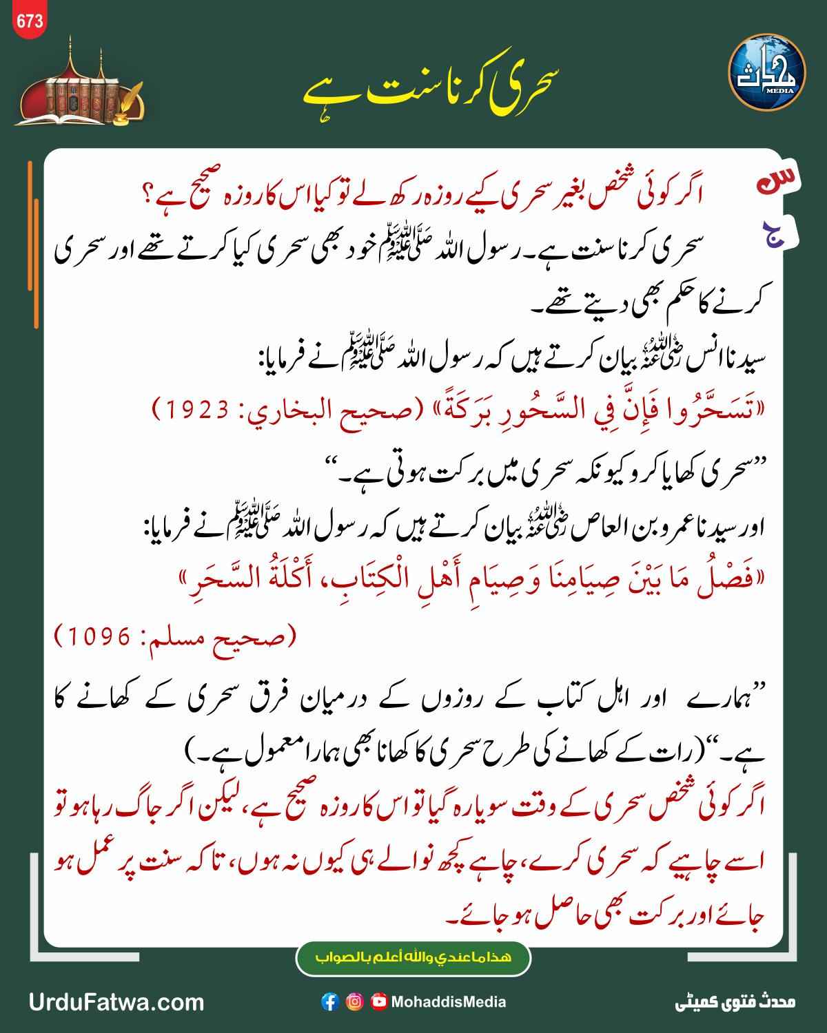 Post published: جولائی 2, 2025 Post category: 09. رمضان المبارک - فضائل ومسائل رمضان وروزہ - فقہ وفتاویٰ ناشر: مرکز النور (محدث میڈیا) سحری کرنا سنت ہے Post Views: 244 اس موضوع کے دیگر گرافکس مزید دیکھیں 362 بار دیکھا گیا فقہ وفتاویٰ کیا کسی بزرگ کا سالانہ عرس منانا جائز ہے جولائی 5, 2025 136 بار دیکھا گیا فقہ وفتاویٰ وارث کے لیے وصیت کرنا مارچ 19, 2025 196 بار دیکھا گیا بچوں کے احکام ومسائل بچے کا پیشاب کپڑوں کو لگ جائے فروری 20, 2025 اس ناشر کے دیگر گرافکس مزید دیکھیں 203 بار دیکھا گیا فقہ وفتاویٰ عرس کے لیے کھانا تیار کرنا اپریل 30, 2025 66 بار دیکھا گیا English Graphics Who has certainly Succeeded? جنوری 5, 2026 200 بار دیکھا گیا فقہ وفتاویٰ عالم اسلام کا ایک ہی وقت میں نماز پڑھنا فروری 18, 2025