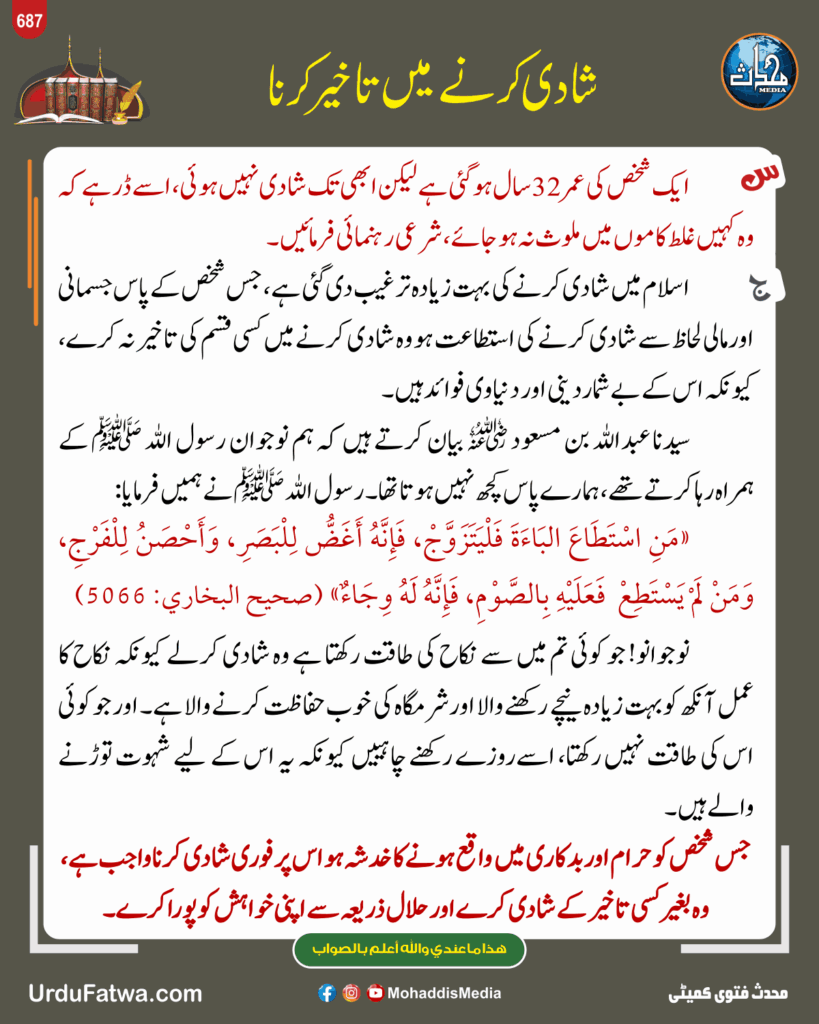 شادی کرنے میں تاخیر کرنا