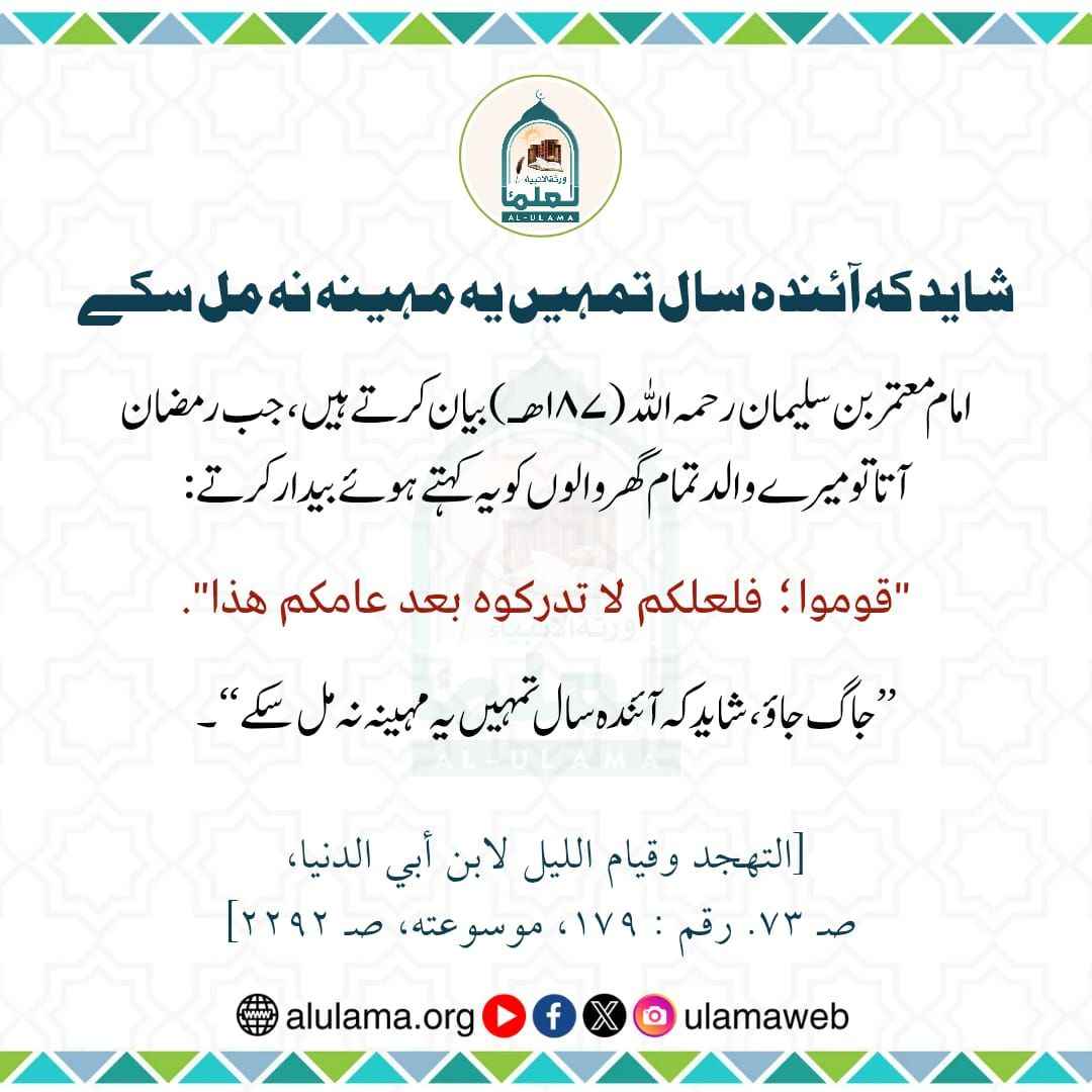 Post published: جولائی 26, 2025 Post category: 09. رمضان المبارک - فضائل ومسائل رمضان وروزہ ناشر: العلماء شاید کہ آئندہ سال تمہیں یہ مہینہ نہ مل سکے Post Views: 202 اس موضوع کے دیگر گرافکس مزید دیکھیں 11 بار دیکھا گیا 09. رمضان المبارک آمد رمضان اپریل 21, 2026 108 بار دیکھا گیا 09. رمضان المبارک سيدنا عبدالله بن مسعود رضى الله عنه مارچ 25, 2024 14 بار دیکھا گیا 09. رمضان المبارک آخری عشرہ کی عبادت اور کوشش اپریل 21, 2026 اس ناشر کے دیگر گرافکس مزید دیکھیں 120 بار دیکھا گیا خواتین کے احکام ومسائل عورتیں اور عید کی نماز اکتوبر 31, 2024 178 بار دیکھا گیا میاں، بیوی اور اولاد اپنی عورتوں کی خواہشات کا خیال فروری 17, 2025 284 بار دیکھا گیا آداب واخلاق اللہ کے لیے کوئی چیز چھوڑنا جنوری 14, 2025