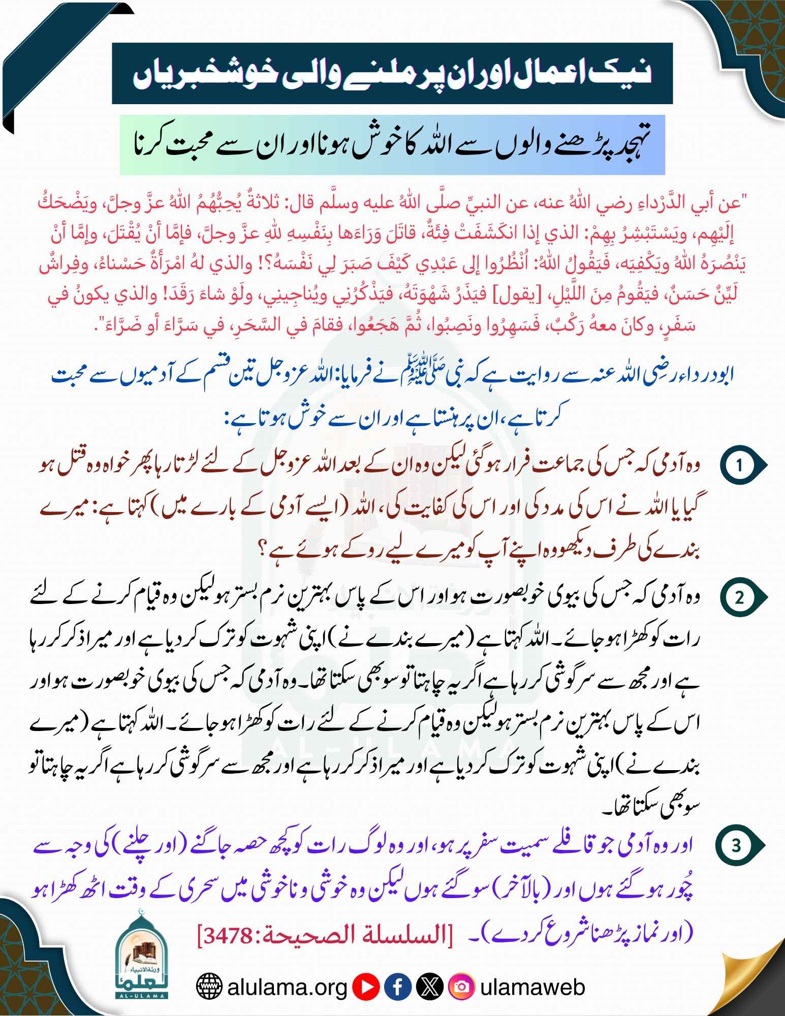 تہجد پڑھنے والوں سے اللہ کا خوش ہونا اور ان سے محبت کرنا