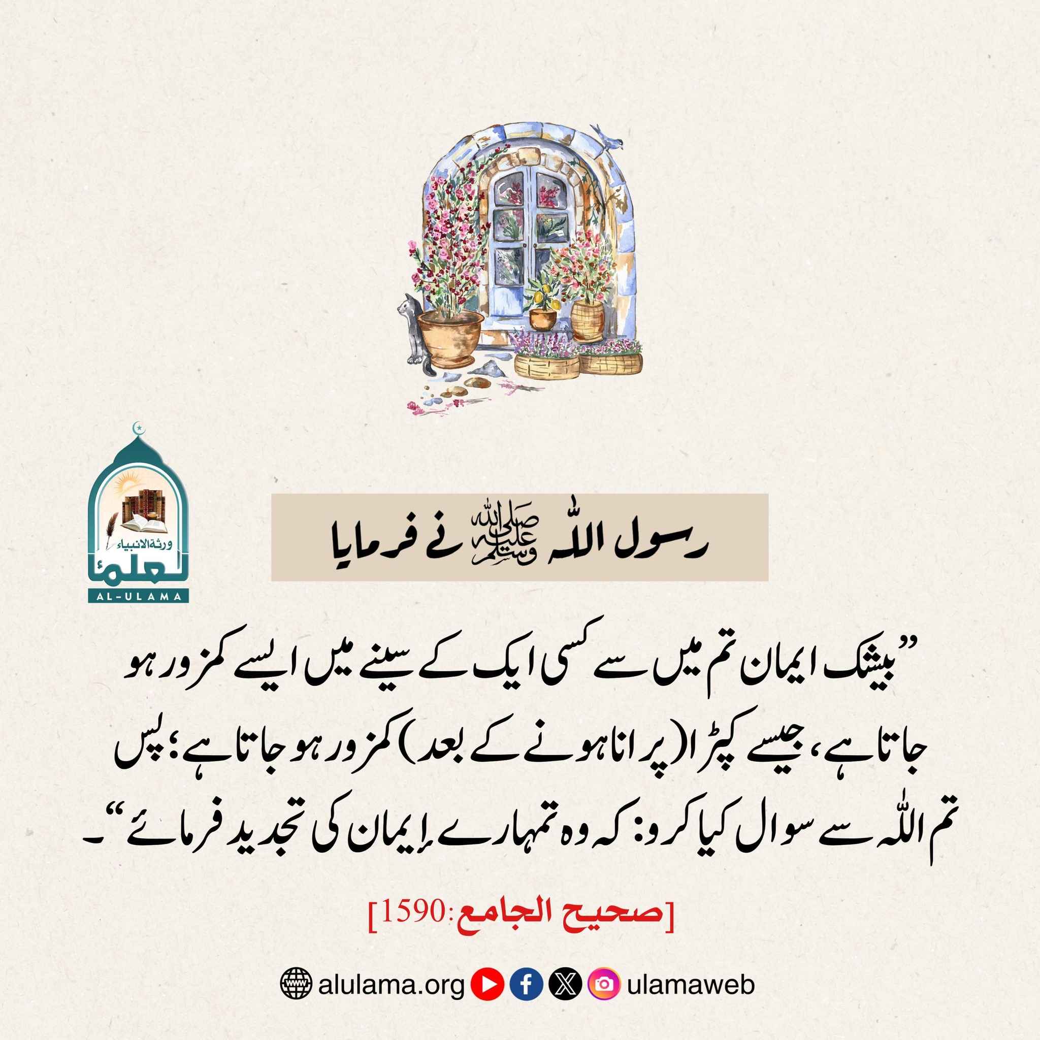 Post published: اگست 11, 2025 Post category: اعمال، وظائف، اذکار وادعیہ ناشر: العلماء تجدید ایمان کی دعا کرتے رہا کرو Post Views: 256 اس موضوع کے دیگر گرافکس مزید دیکھیں 196 بار دیکھا گیا آداب واخلاق سفر سے واپسی پر مسجد میں دو رکعتیں ادا کریں ستمبر 9, 2025 195 بار دیکھا گیا آداب واخلاق جمعہ کے لیے پہلے جانے کی فضیلت جون 14, 2024 243 بار دیکھا گیا 10. شوال المکرم حج سے گزشتہ تمام گناہ معاف ہو جاتے ہیں جون 10, 2024 اس ناشر کے دیگر گرافکس مزید دیکھیں 455 بار دیکھا گیا کبیرہ وصغیرہ گناہ غیبت کرنے کا انجام فروری 14, 2025 6 بار دیکھا گیا آداب واخلاق نبی کریم ﷺ کی اتباع اپریل 16, 2026 122 بار دیکھا گیا آداب واخلاق تین لوگوں کے لیے جنت کی ضمانت نومبر 7, 2024