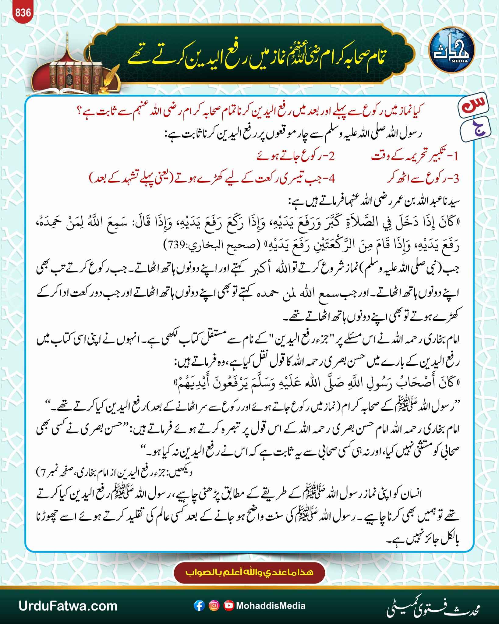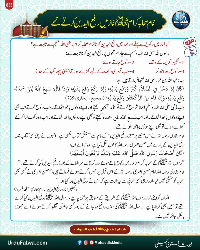 Post published: ستمبر 16, 2025 Post category: احکام ومسائل نماز - سیرت صحابہ وصحابیات - فقہ وفتاویٰ ناشر: مرکز النور (محدث میڈیا) تمام صحابہ کرام رضی اللہ عنھم نماز میں رفع الیدین کرتے تھے Post Views: 276 اس موضوع کے دیگر گرافکس مزید دیکھیں 167 بار دیکھا گیا 18. متفرق احکام ومسائل بالوں کی پیوندکاری دو طرح کی ہے اگست 8, 2024 398 بار دیکھا گیا احکام ومسائل نماز میں نے اپنے بندے کو بخش دیا ہے اگست 15, 2024 189 بار دیکھا گیا احکام ومسائل نماز سورۃ فاتحہ اور دوسری سورت کے درمیان وقفہ کرنا نومبر 1, 2025 اس ناشر کے دیگر گرافکس مزید دیکھیں 191 بار دیکھا گیا آداب واخلاق نجات گھر بیٹھنے میں ہے نومبر 25, 2025 212 بار دیکھا گیا ارشاد باری تعالٰی دل کو ہدایت کب ملتی ہے دسمبر 15, 2025 167 بار دیکھا گیا فقہ وفتاویٰ مطلقہ کا بچوں کے ساتھ رہنا اپریل 22, 2025