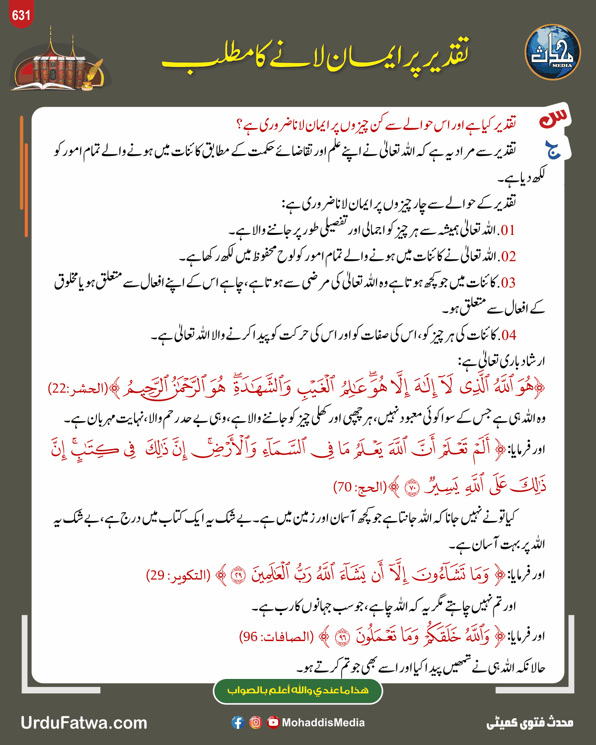 Post published: مئی 15, 2025 Post category: فقہ وفتاویٰ - قدر وجبر ناشر: مرکز النور (محدث میڈیا) تقدیر پر ایمان لانے کا مطلب Post Views: 170 اس موضوع کے دیگر گرافکس مزید دیکھیں 70 بار دیکھا گیا فقہ وفتاویٰ قسم کو پورا کرنا مارچ 4, 2025 70 بار دیکھا گیا زکوۃ، صدقات وعشر وقتا فوقتا جمع کیے گئے مال کی زکوۃ مارچ 17, 2025 124 بار دیکھا گیا احکام ومسائل نماز مسافر امام کے پیچھے نماز مارچ 1, 2025 اس ناشر کے دیگر گرافکس مزید دیکھیں 124 بار دیکھا گیا سیرت رسول رسول اللہ ﷺ دن اور راتیں کیسے گزارتے مئی 8, 2025 110 بار دیکھا گیا آداب واخلاق بچوں کی وفات پر صبر کا انعام ستمبر 30, 2025 127 بار دیکھا گیا آداب واخلاق مقام صبر دسمبر 27, 2023