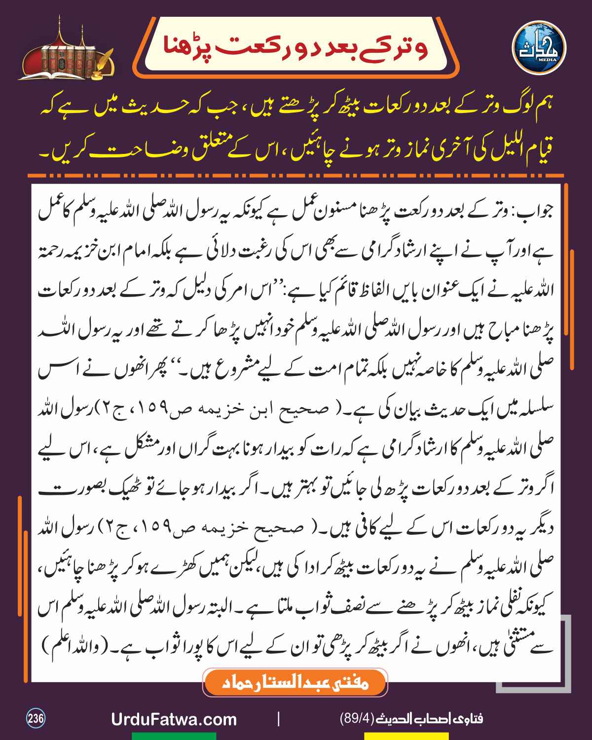 Post published: اپریل 14, 2025 Post category: سنتیں نوافل نماز وتر تہجد و تراویح - فقہ وفتاویٰ ناشر: مرکز النور (محدث میڈیا) وتر کے بعد دو رکعت پڑھنا Post Views: 281 اس موضوع کے دیگر گرافکس مزید دیکھیں 373 بار دیکھا گیا احکام ومسائل نماز نماز عصر کا وقت فروری 28, 2025 159 بار دیکھا گیا اصلاح معاشرہ باری تعالی آسمان دنیا پر نزول فرما کر پکارتے ہیں دسمبر 4, 2024 183 بار دیکھا گیا بچوں کے احکام ومسائل چھوٹی بچیوں کو غیر شرعی لباس پہنانا اپریل 22, 2025 اس ناشر کے دیگر گرافکس مزید دیکھیں 618 بار دیکھا گیا 09. رمضان المبارک شب قدر کی دعا جنوری 26, 2024 133 بار دیکھا گیا احکام ومسائل نماز لا علمی میں بغیر غسل کے نماز پڑھنا فروری 20, 2025 288 بار دیکھا گیا فقہ واصول فقہ جنازے سے پہلے میت کا چہرہ دیکھنا مارچ 1, 2025