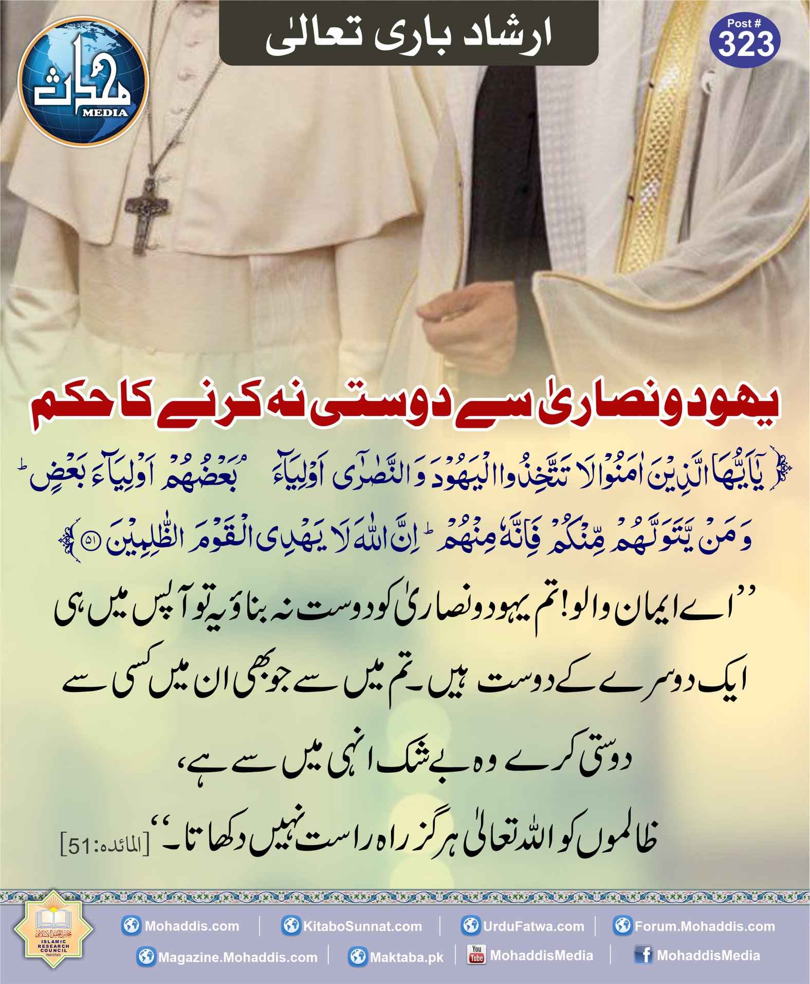 Post published: دسمبر 9, 2025 Post category: آداب واخلاق - ارشاد باری تعالٰی - حکومت وریاست ناشر: مرکز النور (محدث میڈیا) یہودی ونصاری سے دوستی نہ کرنے کا حکم Post Views: 74 اس موضوع کے دیگر گرافکس مزید دیکھیں 105 بار دیکھا گیا آداب واخلاق امام احمد بن حنبل فروری 22, 2024 249 بار دیکھا گیا آداب واخلاق امیر المومنین علی رضی اللہ عنہ اپریل 4, 2024 129 بار دیکھا گیا آداب واخلاق مسلمان سے جھگڑنے کا انجام دسمبر 27, 2023 اس ناشر کے دیگر گرافکس مزید دیکھیں 111 بار دیکھا گیا 09. رمضان المبارک دیر سے روزہ افطار کرنا فروری 18, 2025 83 بار دیکھا گیا 02. صفر المظفر بدشگونی اور نحوست کا تصور ستمبر 12, 2025 110 بار دیکھا گیا آداب واخلاق مصائب پر صبر کیوں؟ فروری 3, 2024