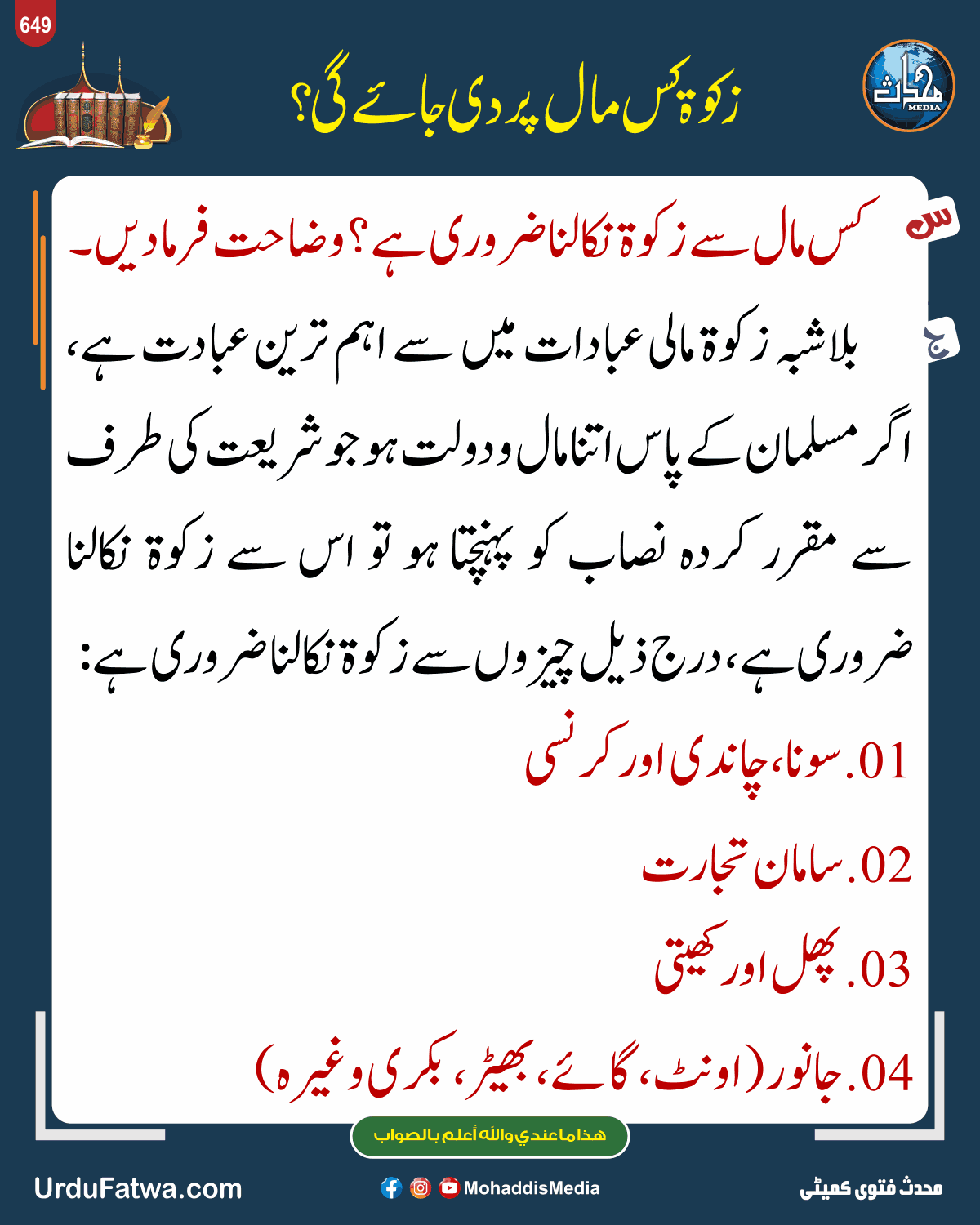 Post published: مئی 13, 2025 Post category: زکوۃ، صدقات وعشر - فقہ وفتاویٰ ناشر: مرکز النور (محدث میڈیا) زکوۃ کس مال پر دی جائے گی Post Views: 106 اس موضوع کے دیگر گرافکس مزید دیکھیں 137 بار دیکھا گیا احکام ومسائل نماز فوت شدہ نمازوں کی ادائیگی کے لیے اذان دینا مارچ 5, 2025 121 بار دیکھا گیا فقہ وفتاویٰ بچوں میں مساوات مارچ 19, 2025 99 بار دیکھا گیا اصلاح معاشرہ تنگ دستوں کا سہارا بنیں جنوری 13, 2024 اس ناشر کے دیگر گرافکس مزید دیکھیں 14 بار دیکھا گیا English Graphics New Islamic Year 1441 جنوری 6, 2026 88 بار دیکھا گیا فقہ وفتاویٰ میرے پاس ایک پلاٹ ہے مارچ 17, 2025 21 بار دیکھا گیا English Graphics How to Save from Grief and Sadness جنوری 2, 2026