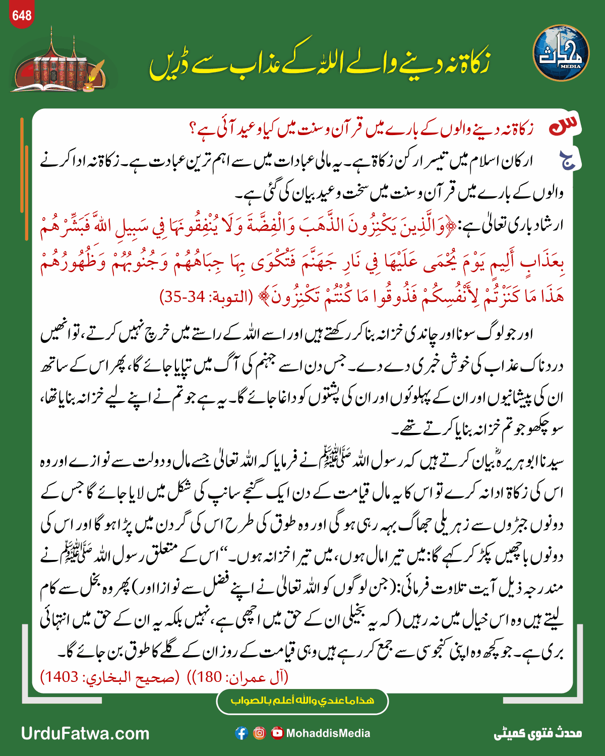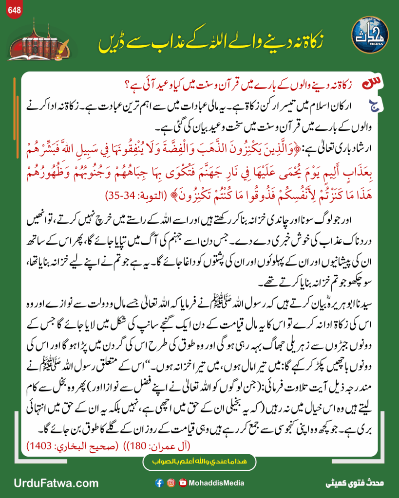 Post published: مئی 13, 2025 Post category: زکوۃ، صدقات وعشر - فقہ وفتاویٰ ناشر: مرکز النور (محدث میڈیا) زکاۃ نہ دینے والے اللہ کے عذاب سے ڈریں Post Views: 43 اس موضوع کے دیگر گرافکس مزید دیکھیں 174 بار دیکھا گیا فقہ وفتاویٰ ایمان کے ارکان اپریل 18, 2025 184 بار دیکھا گیا فقہ وفتاویٰ چھٹی کا دن کیسے گزارا جائے مئی 15, 2025 127 بار دیکھا گیا 09. رمضان المبارک رمضان میں فوت شدہ شخص کا فدیہ فروری 18, 2025 اس ناشر کے دیگر گرافکس مزید دیکھیں 240 بار دیکھا گیا اعمال، وظائف، اذکار وادعیہ توبہ و استغفار کی دعا جنوری 26, 2024 102 بار دیکھا گیا 19. حالات حاضرہ سیلاب زدگان کی مدد کیجیئے ستمبر 16, 2025 41 بار دیکھا گیا آداب واخلاق والدین کا ادب دسمبر 9, 2025