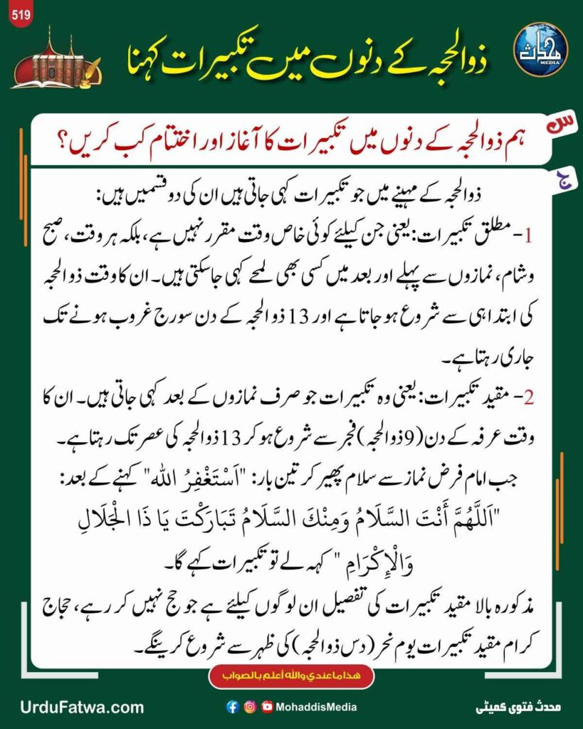 ذوالحجہ کے دنوں میں تکبیرات کہنا